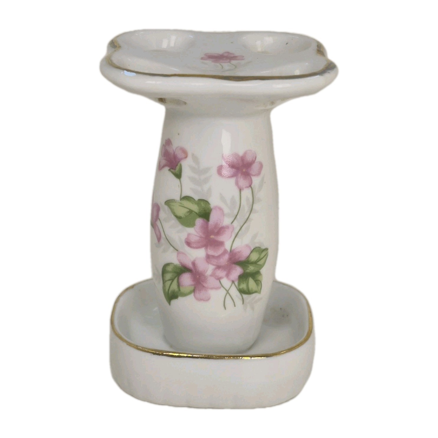 Vintage Porcelain Toothbrush Holder Handpainted Roses Gold Trim Retro Granycore
