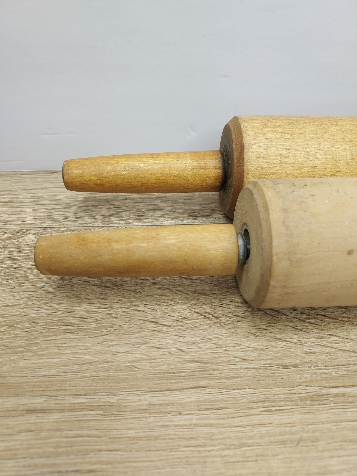 как выглядит Vtg Wooden Rolling Pins Free Spinning Handles Country Cottage Farmhouse Kitchen фото