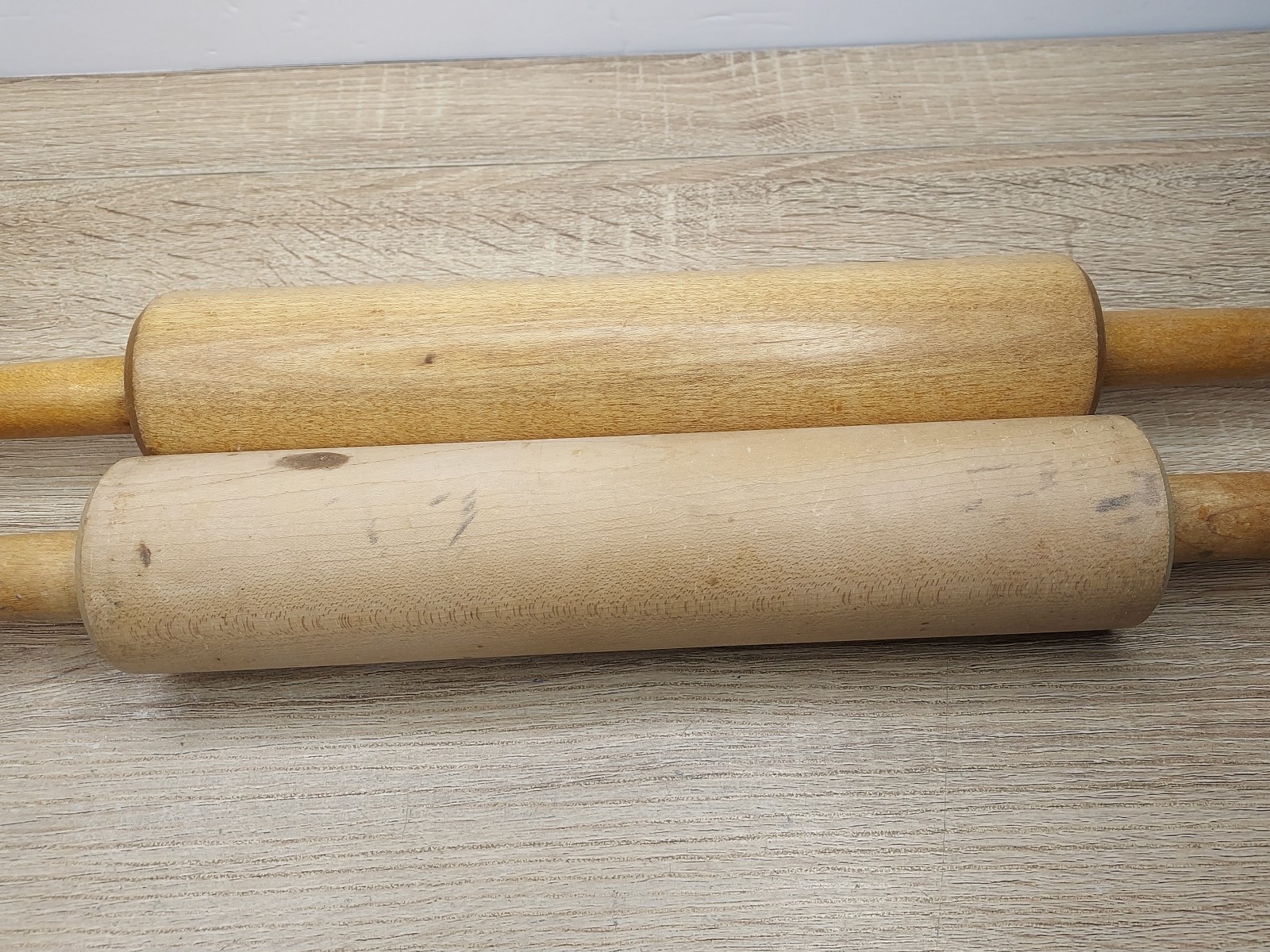 • Vtg Wooden Rolling Pins Free Spinning Handles Country Cottage Farmhouse Kitchen