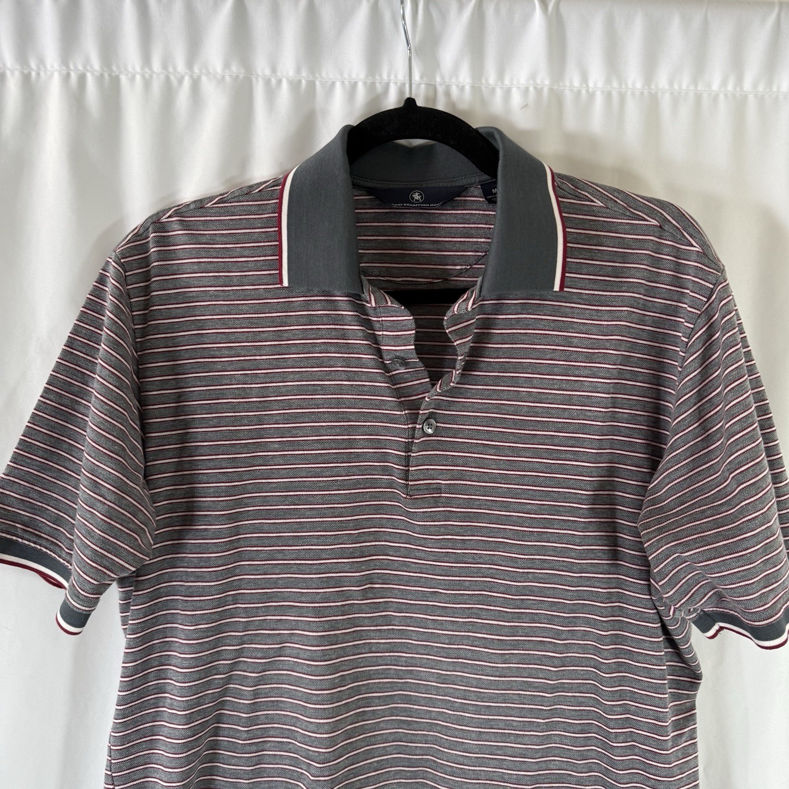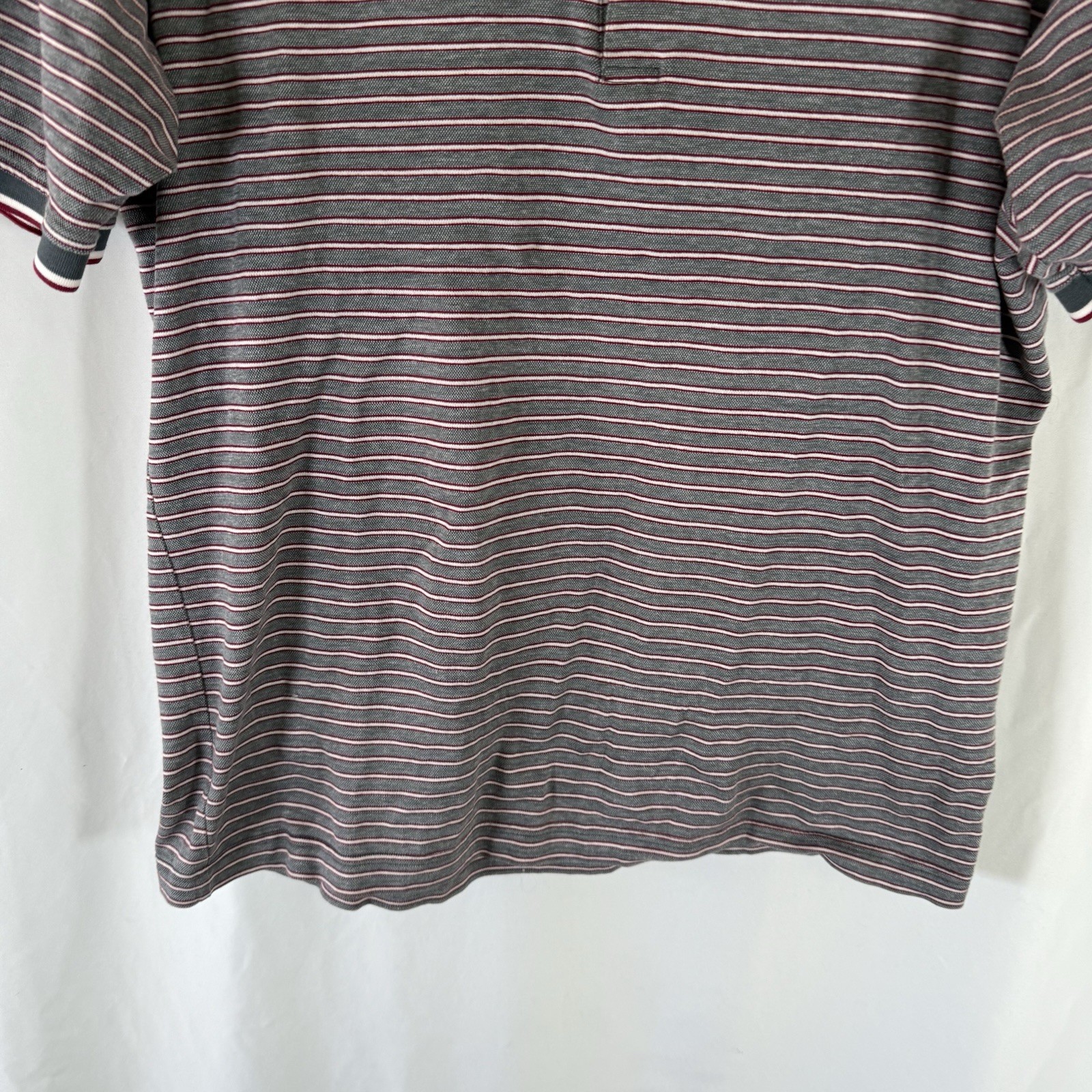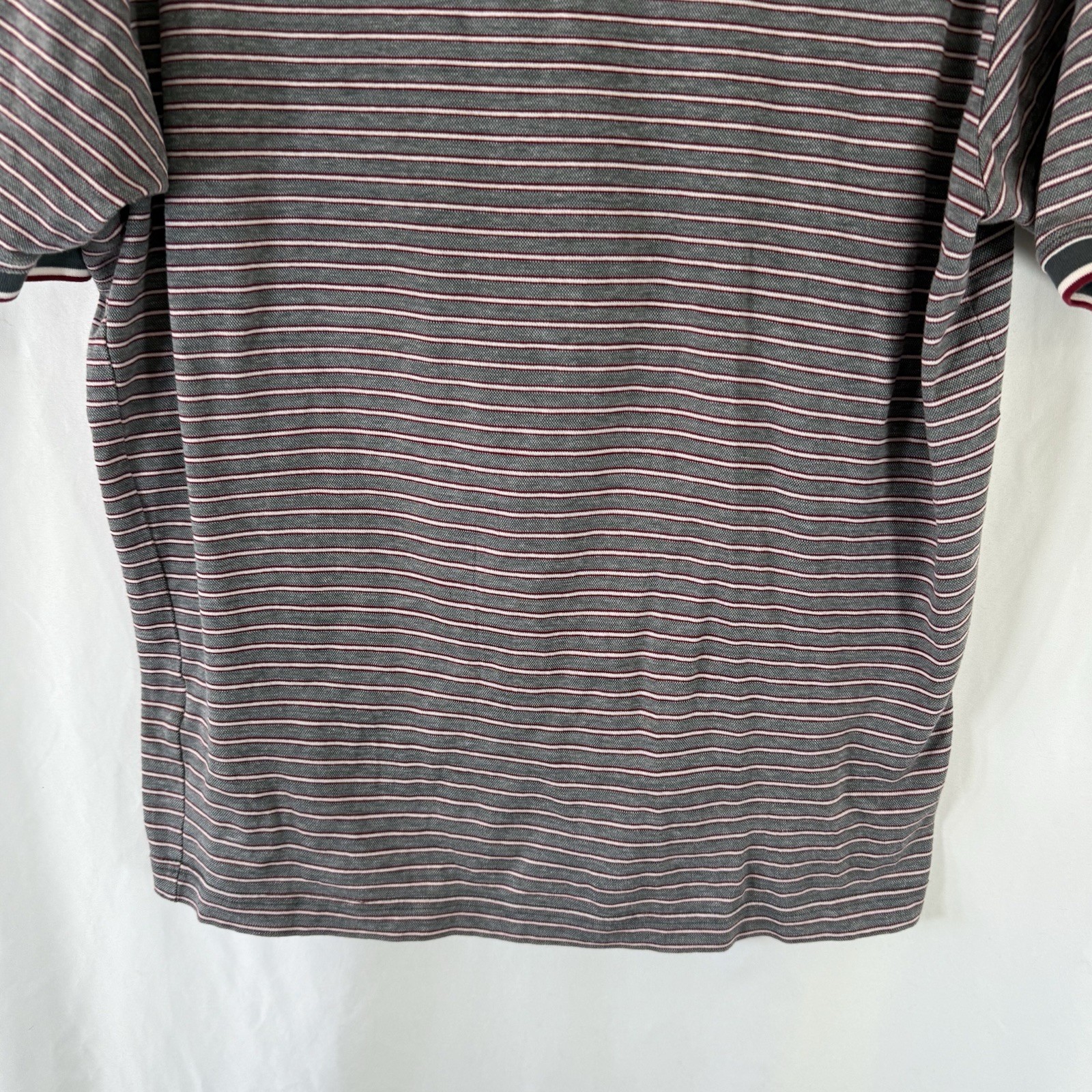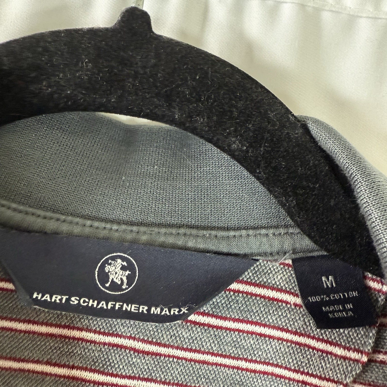 Hart Schaffner Marx Polo Men's Medium Grey Striped Short Sleeve 100 Cotton