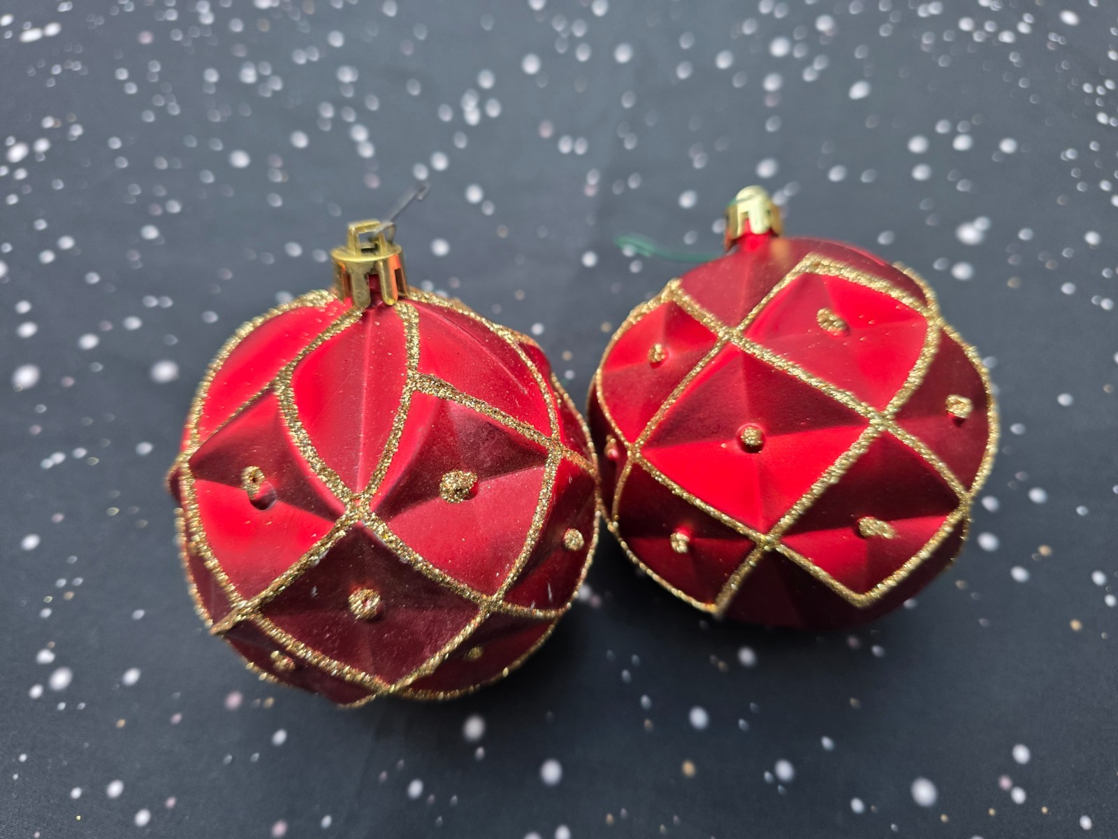 Lot 12 Plastic shatterproof Christmas ornaments 3 red gold green ball