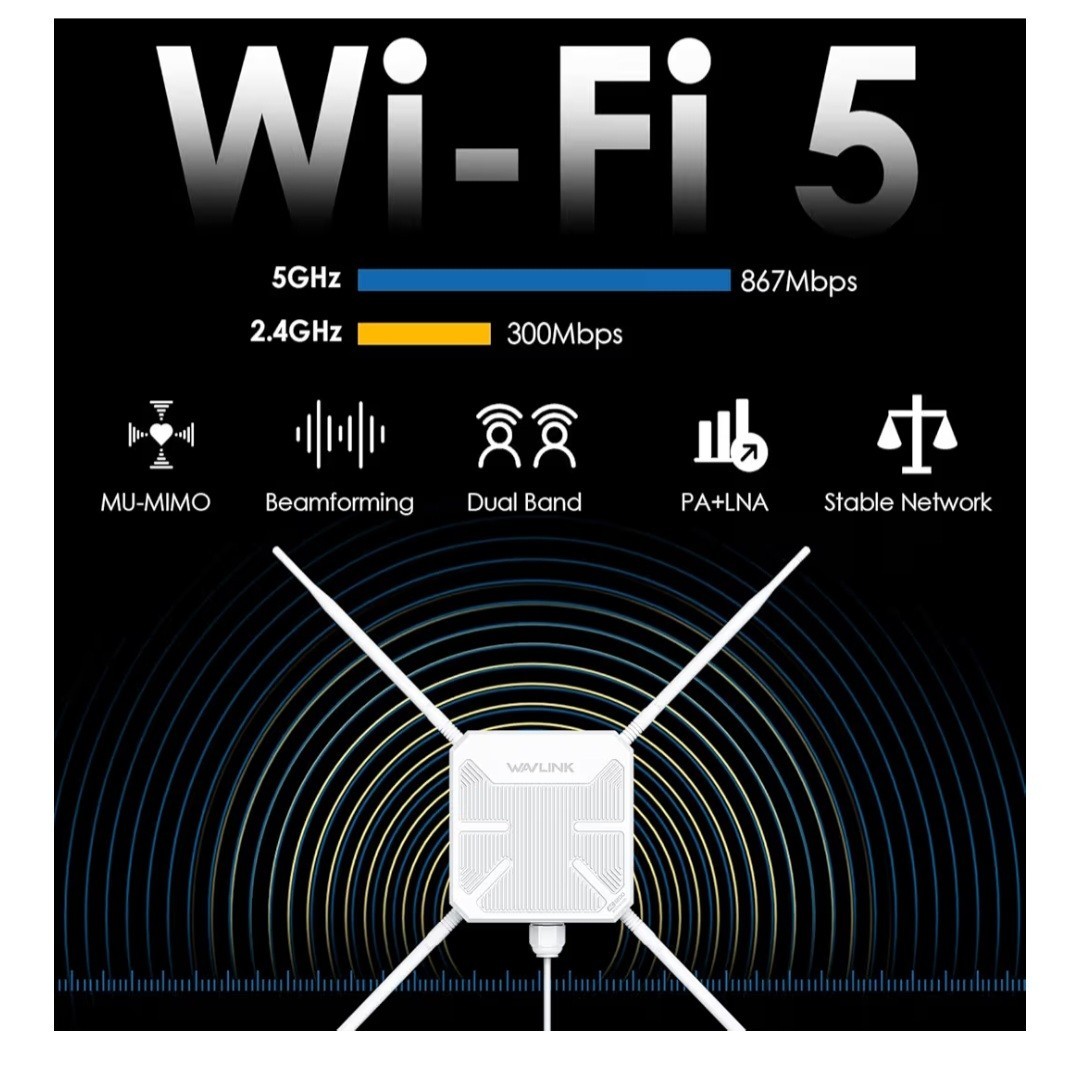 WAVLINK AC1200 Outdoor WiFi Extender Access Point, IP65, Waterproof, Dual Band