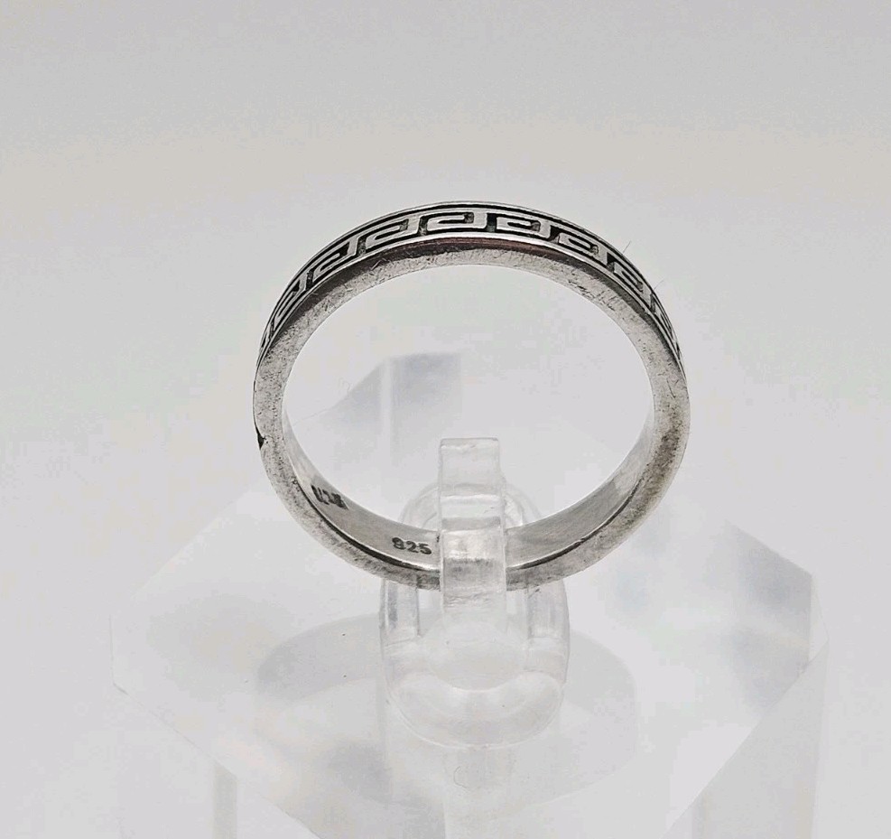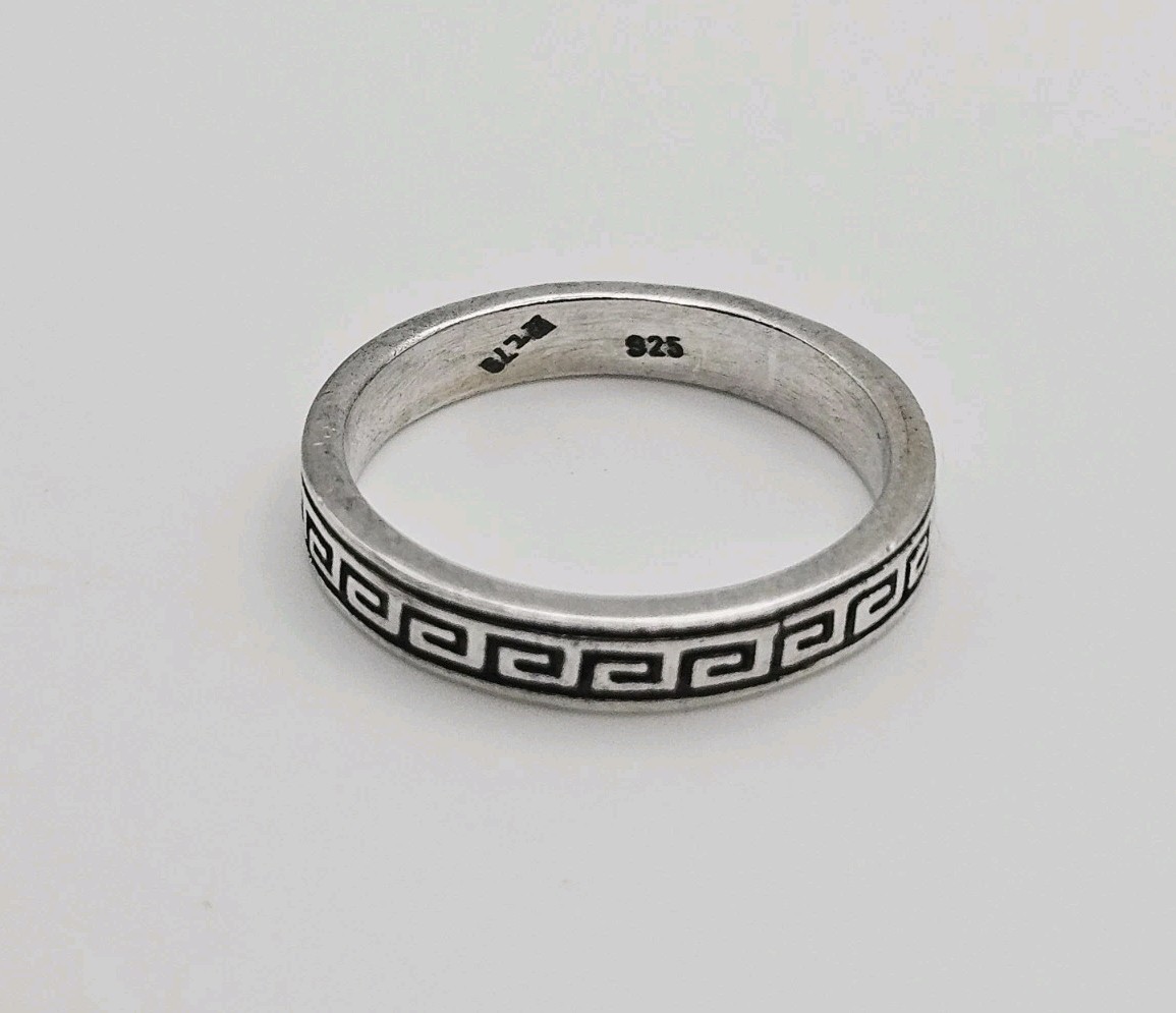 Sterling Silver Vintage Greek Key Band Ring Size 8 Unidentified Makers Mark