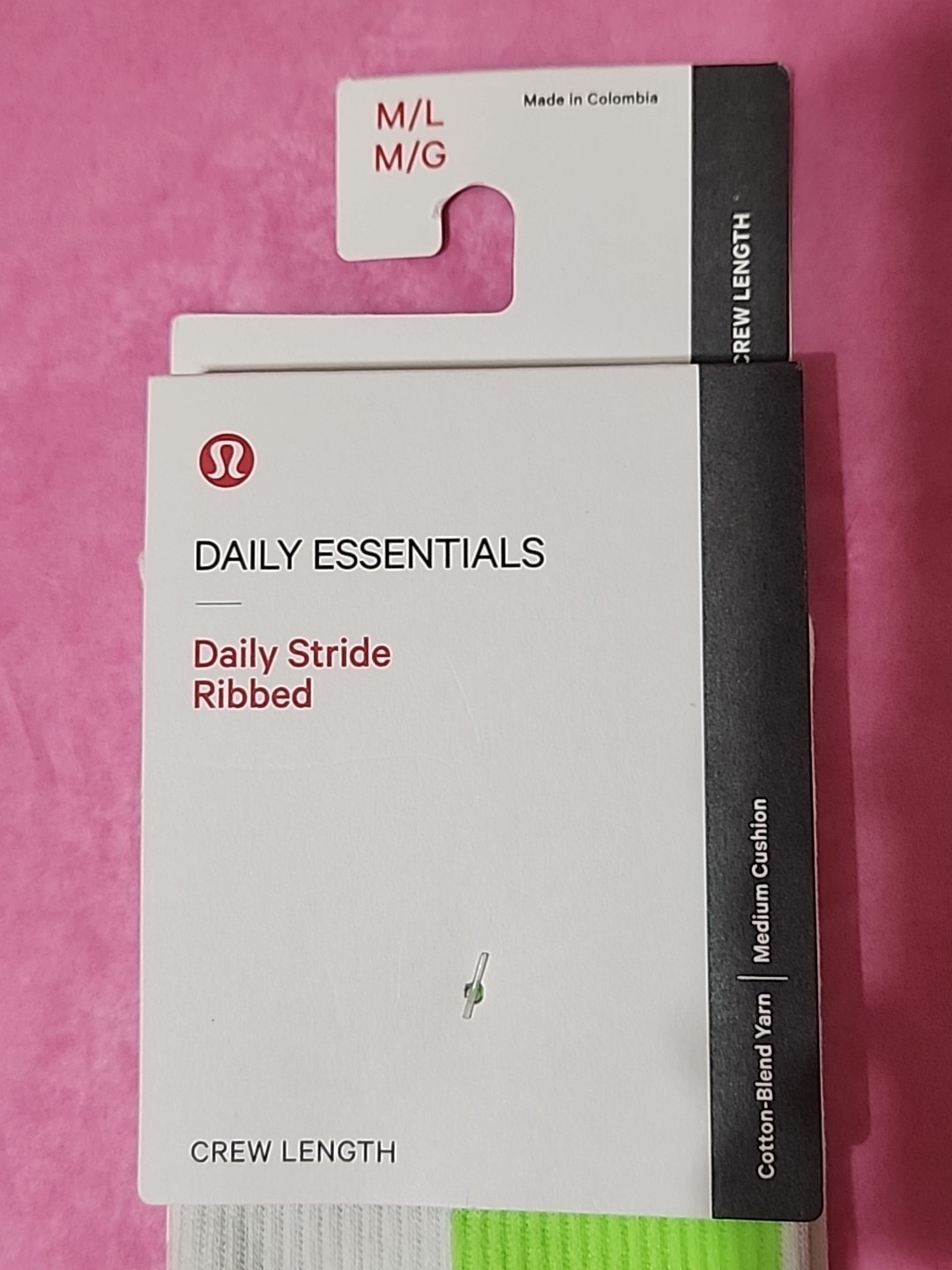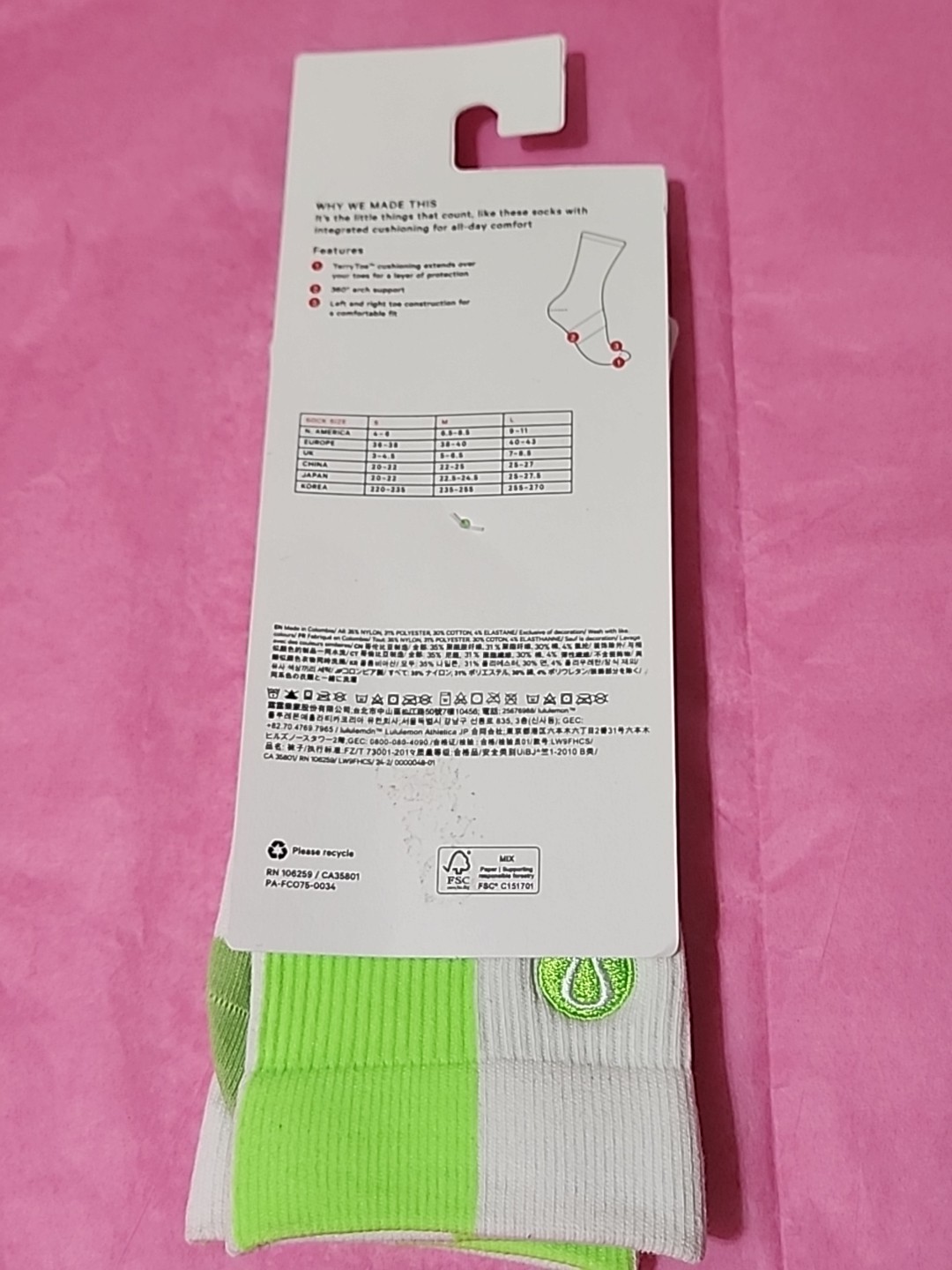 Lululemon Crew Socks Size M/L Essentials Daily Stride Ribbed Green/White NEW