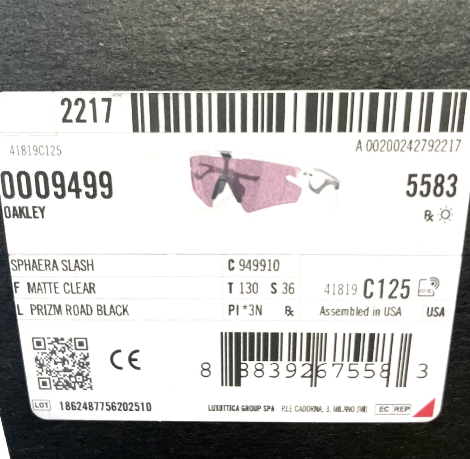 Oakley Sphaera Slash Sunglasses Matte Clear Prizm Road Black OO9499-1036 w/case