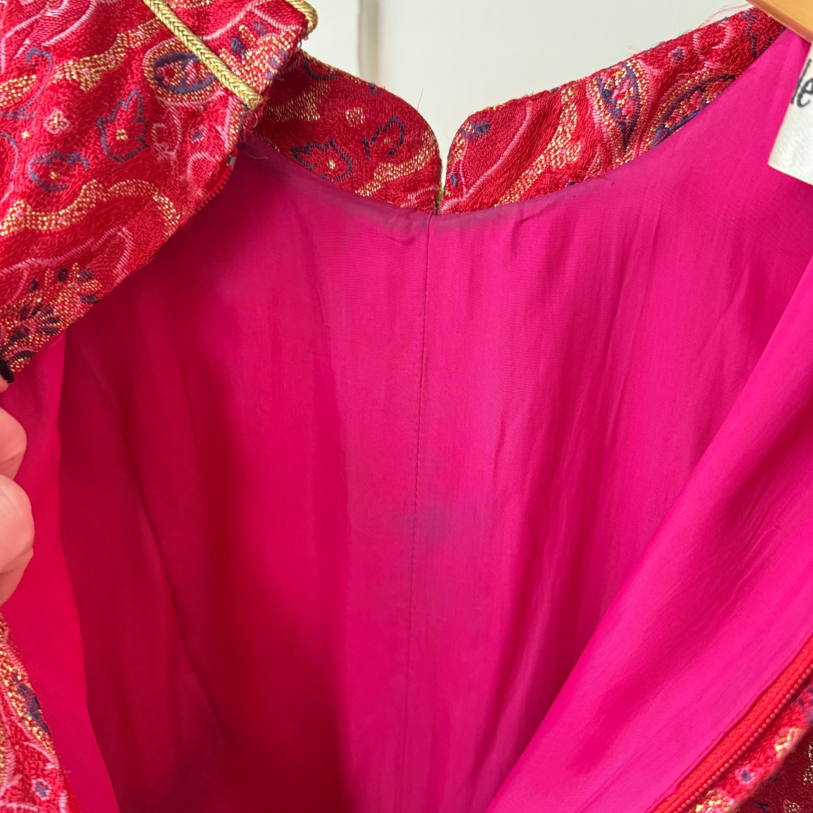 VTG 60s 70s Adele Simpson Red Brocade Gold Lurex Metallic Dress Sz Medium