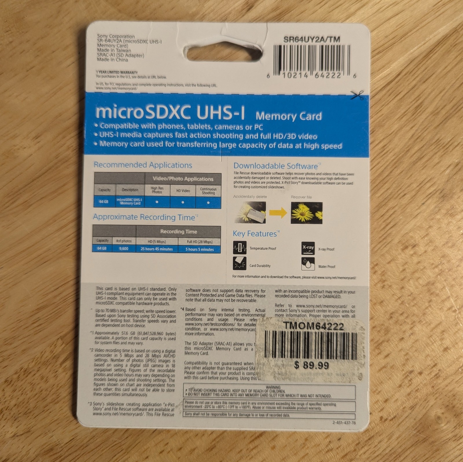 как выглядит sony sr64uy2a/tm Micro SDXC UHS-I  high speed 64 GB фото