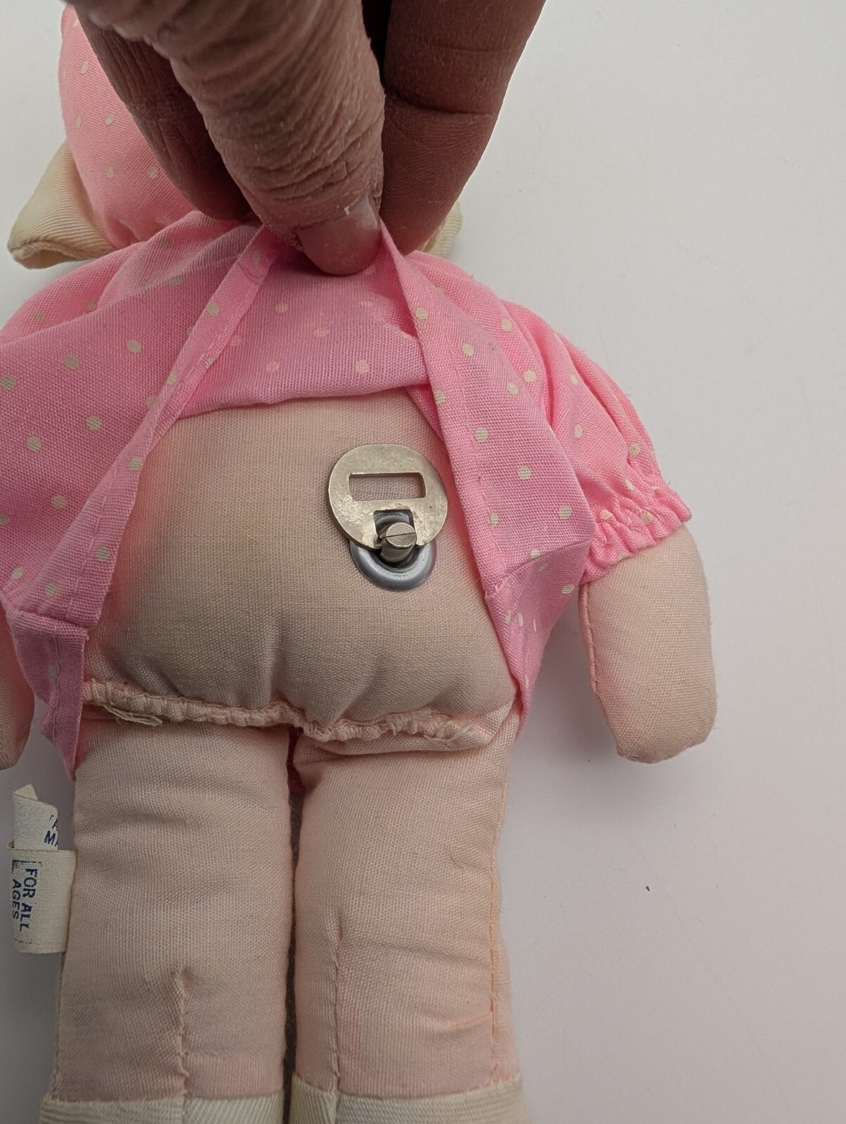 Vintage Eden Doll Cloth Musical Wind Up Doll Pink Gingham Bonnet 9.5