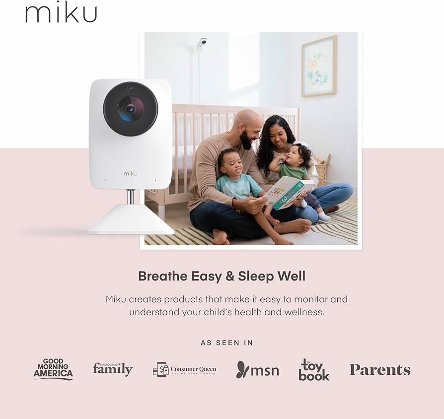 Miku Pro Smart Baby Monitor with Camera, Track Live Breathing with No Wearable