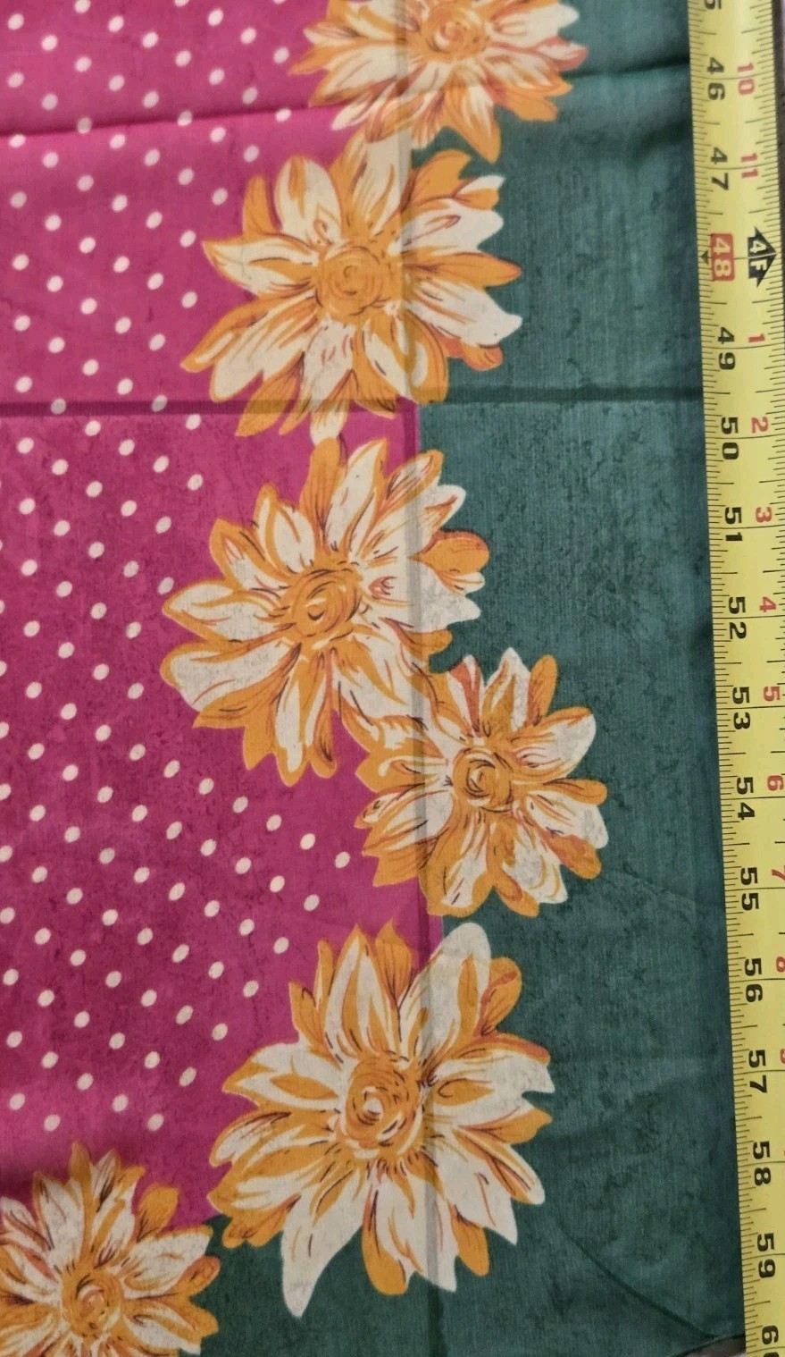 Vintage Retro Floral Polka Dot Scarf Pink Green Yellow Flowers