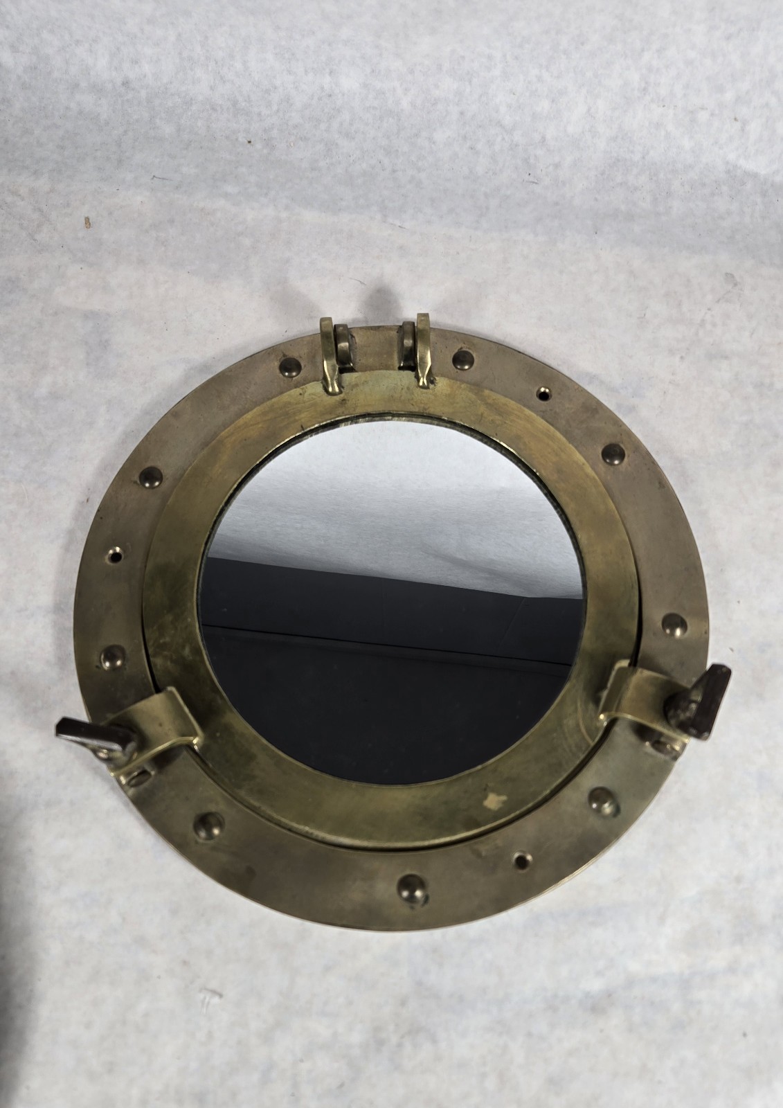 Pair 2 Vintage Nautical Round PORTHOLE WALL MIRRORS Heavy Brass 11.5 SEE PHOTOS