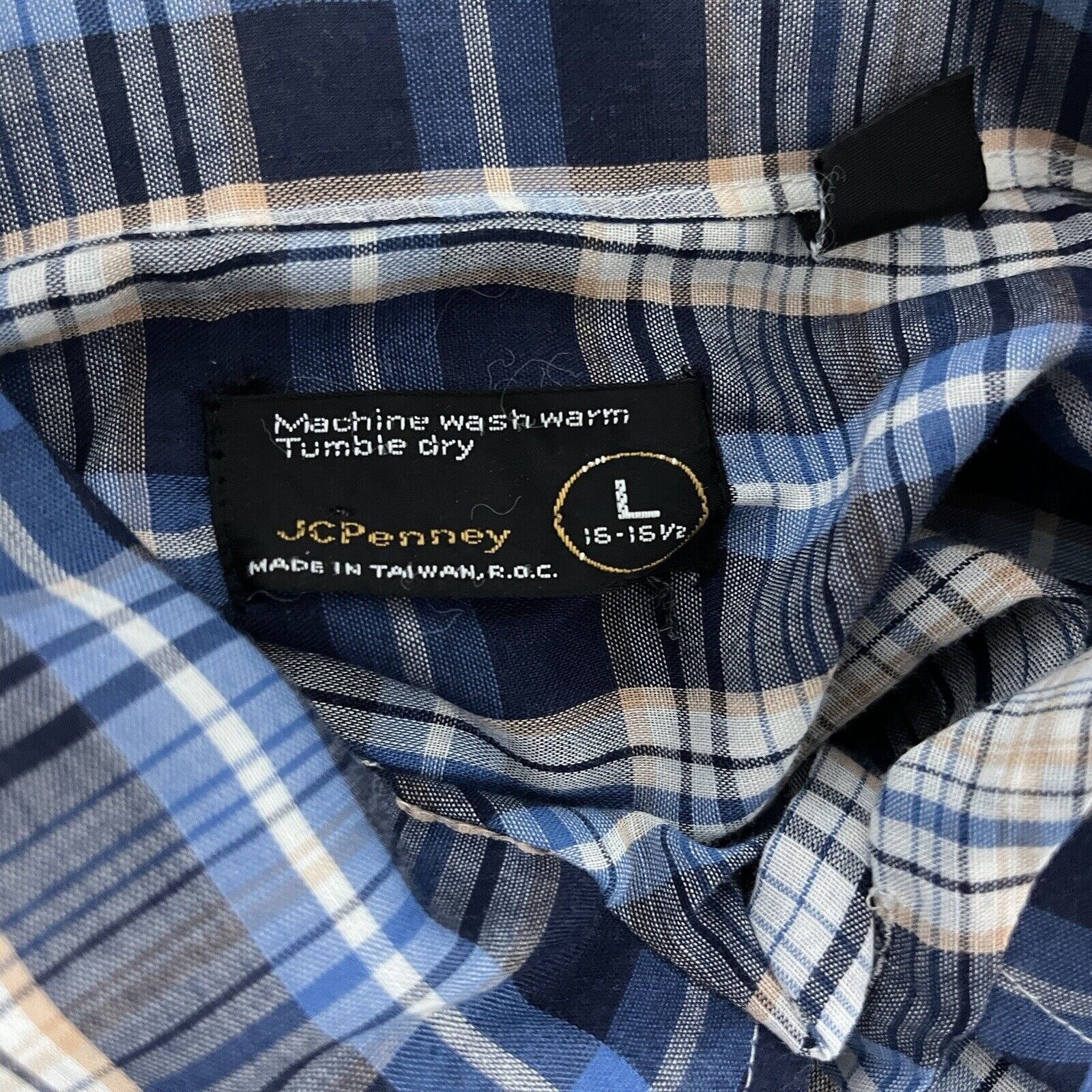как выглядит JC Penney Men s 1970s Button Up Plaid Shirt Size Large 16-16-1/2 Vintage Fashion фото