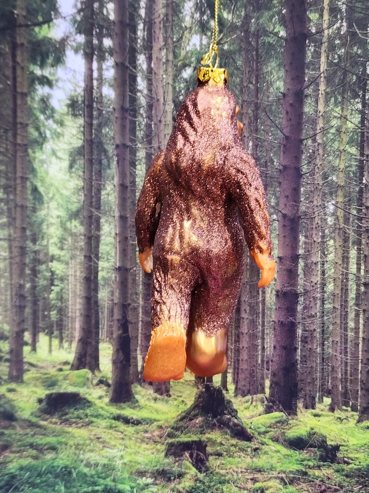 New Blown glass glittered Brown Sasquatch Big Foot Christmas Ornament NWT