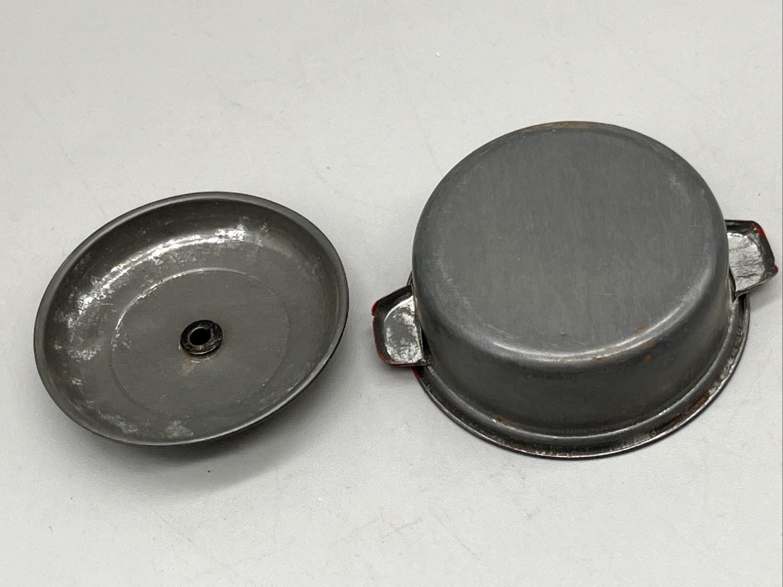 Vintage Childrens Toy Tin Aluminum Kitchen Metal Pan Pot Plates Vtg