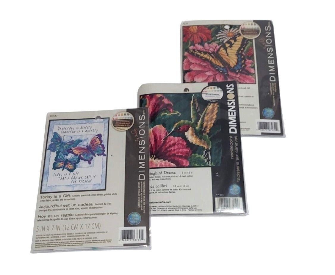 3 Dimensions Needlepoint Cross Stitch Kits Hummingbird Butterflies 5 X 5 inch