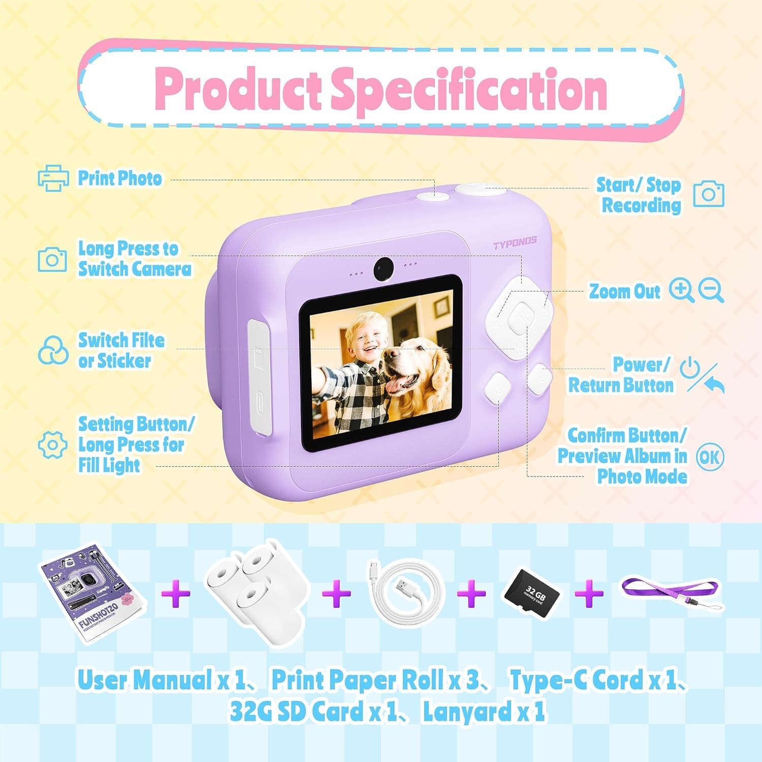 как выглядит Instant Print Camera for Kids, Christmas Birthday Gifts for Girls Boys Age 3-12, фото