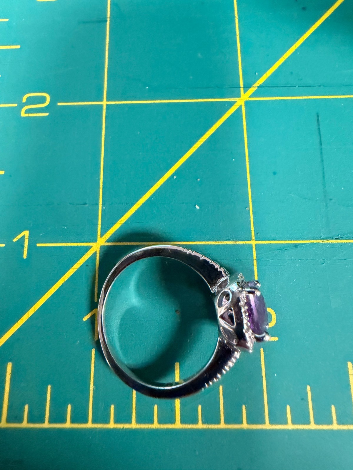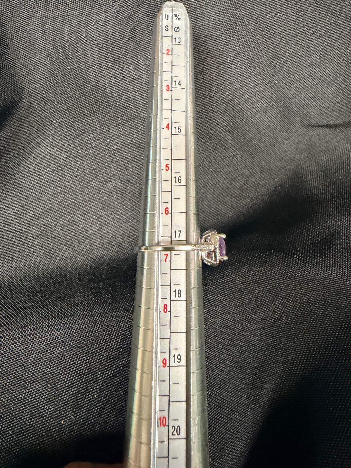 как выглядит Sterling Silver 925 Cushion Cut Amethyst Halo Set Ring Size 6.75 фото
