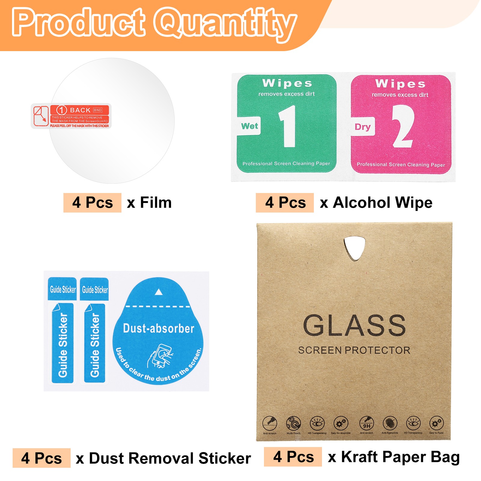 4pcs Watch Glass Screen Protectors 43mm Tempered Glass HD Clear Curved Edge