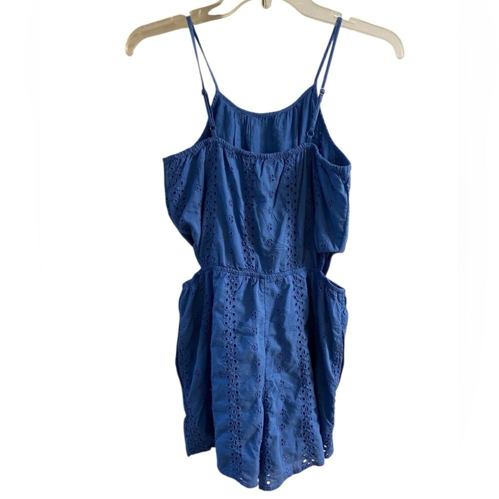 Abercrombie kids blue romper eyelet cutout with pockets girls 15 NWT