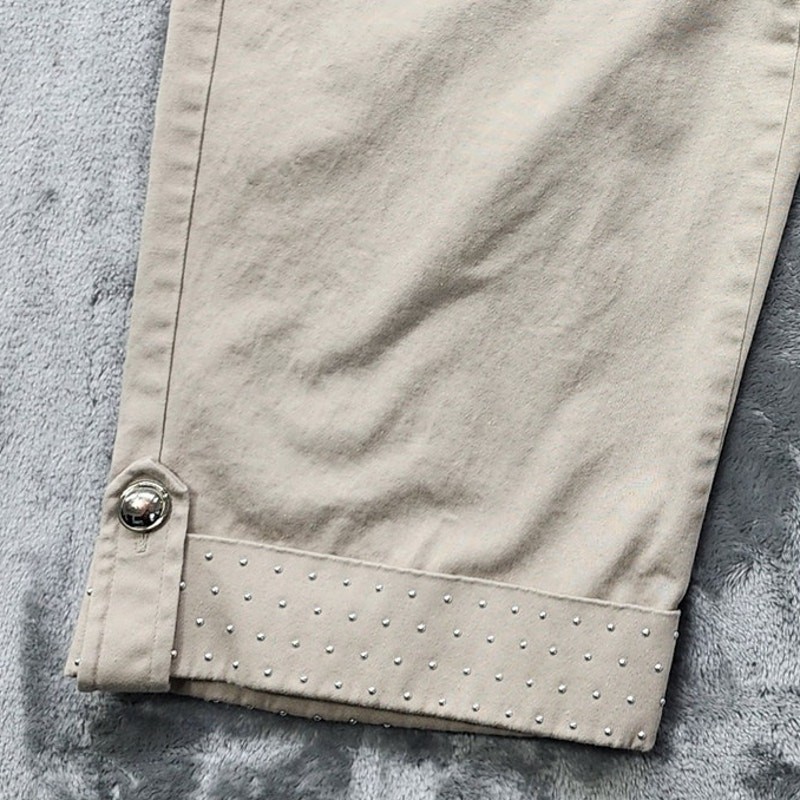 Vintage JM Collection Pants Womens 8 Tan Khaki Capri Cuffed Studded Hem Casual