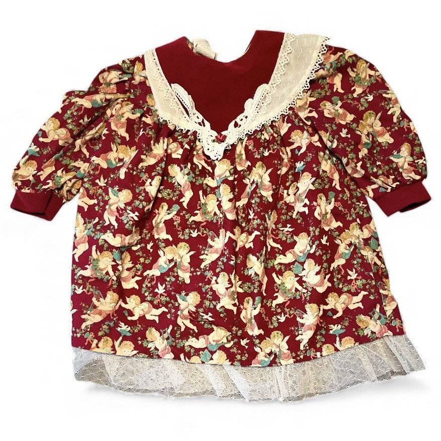 Vintage Cherub Collared Party Holiday Dress Cotton Lace Trim Girls 2T