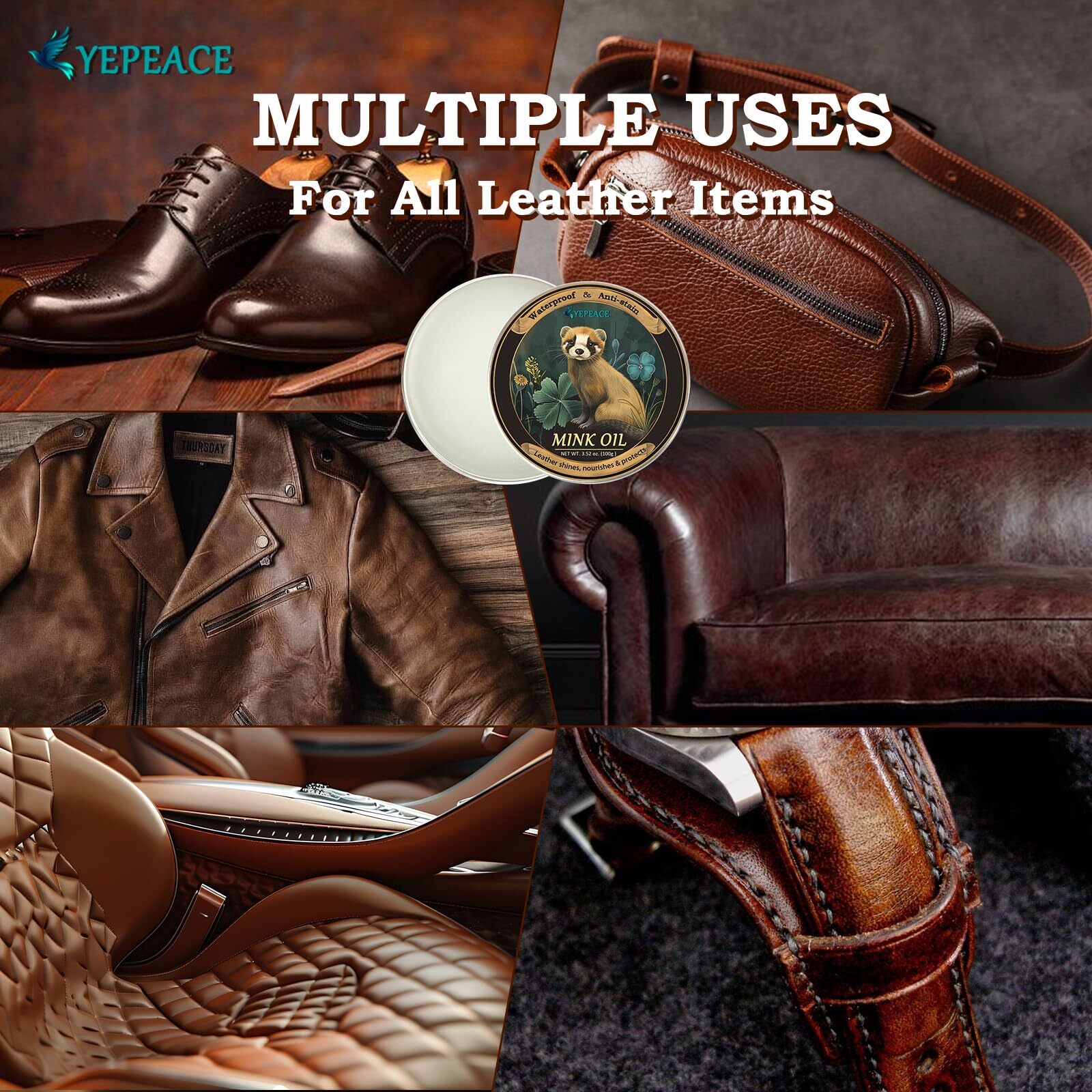 Mink Oil for Leather Boots, Leather Cleaner and Conditioner 3.53oz, All-Natural