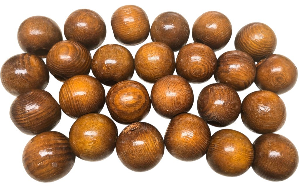 как выглядит 22 Vintage 1960s Round Wooden Beads Balls 1 1/2" x 1/2" Hole NOS Crafts Macrame фото