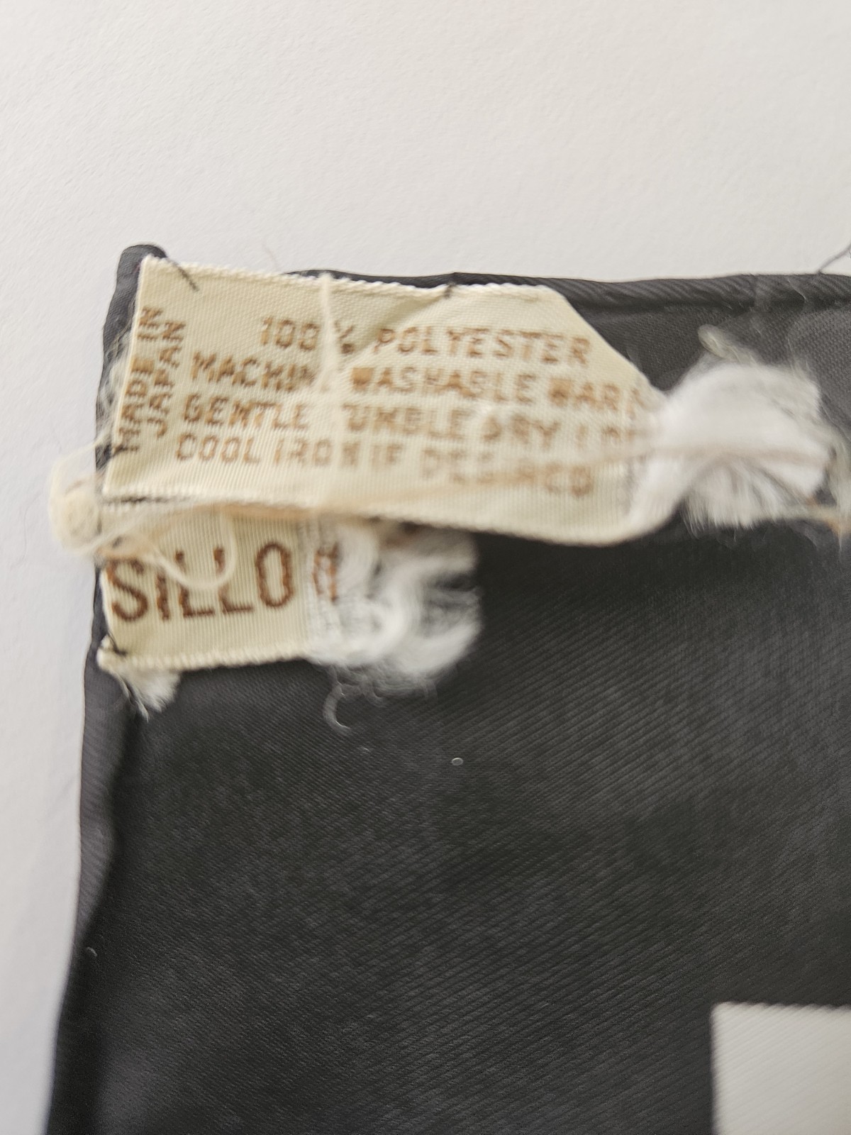 как выглядит Vtg Black White 26" Scarf Mod Daisy SILLO Or SILLOHUETTE JAPAN Poly Satin фото