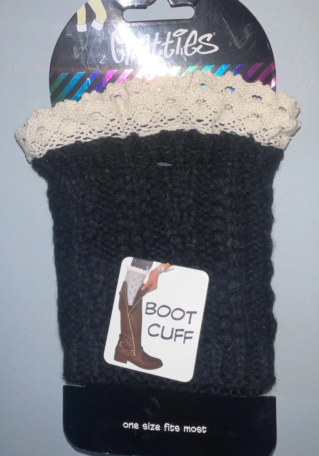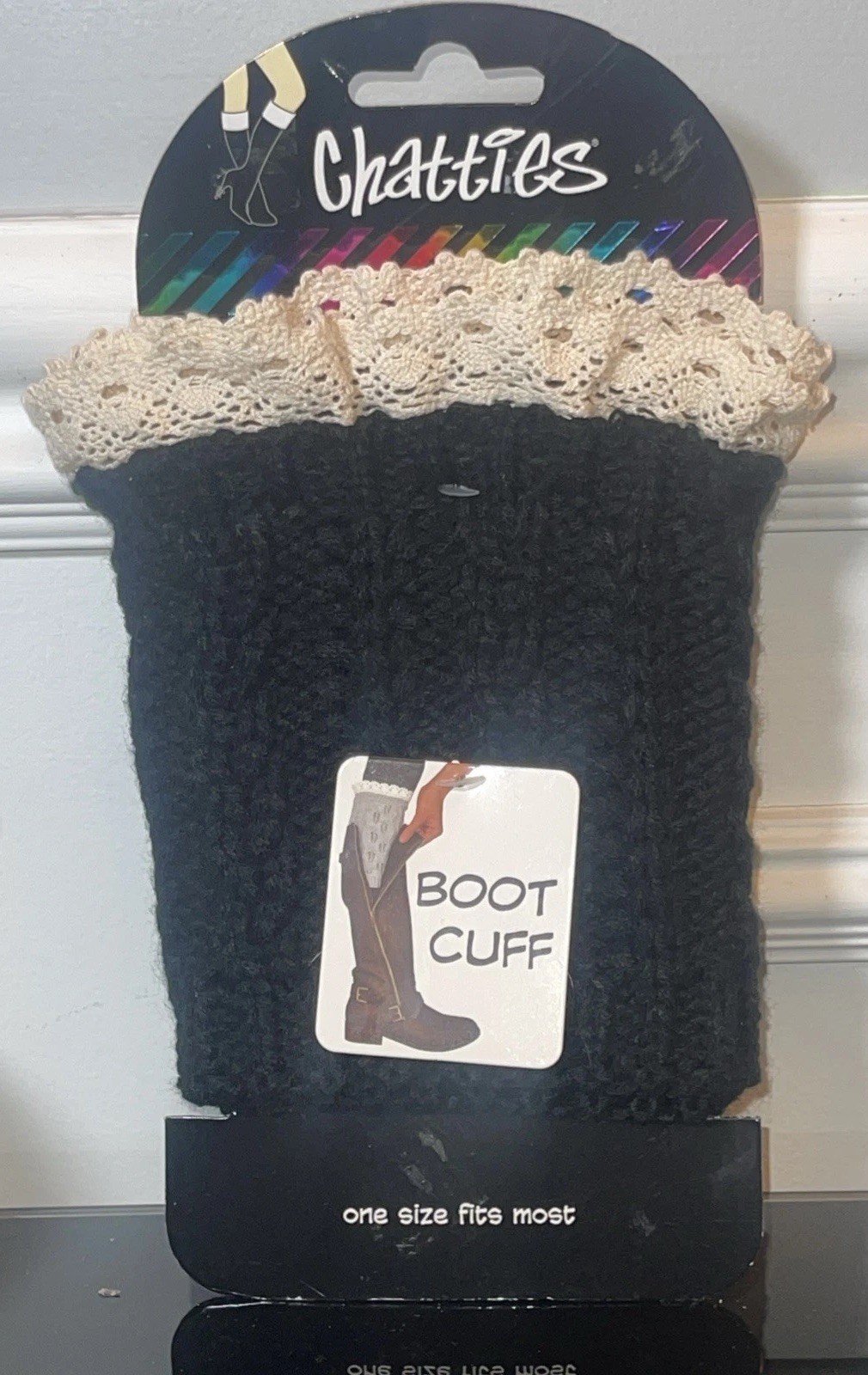 Chatties Boot Cuffs-Black/Cream -Warm Cozy-Women s One Size Fits Most New