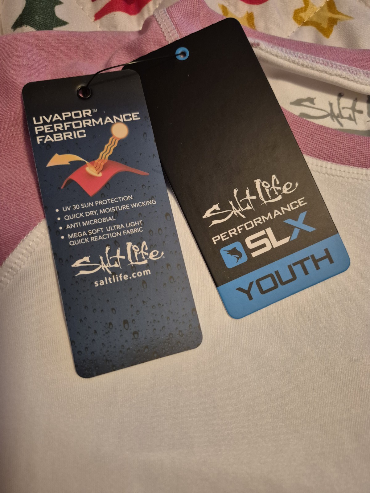 как выглядит Salt Life SLX UVapor Youth Long Sleeve Shirt Large Salty State Of Mind Pink New фото