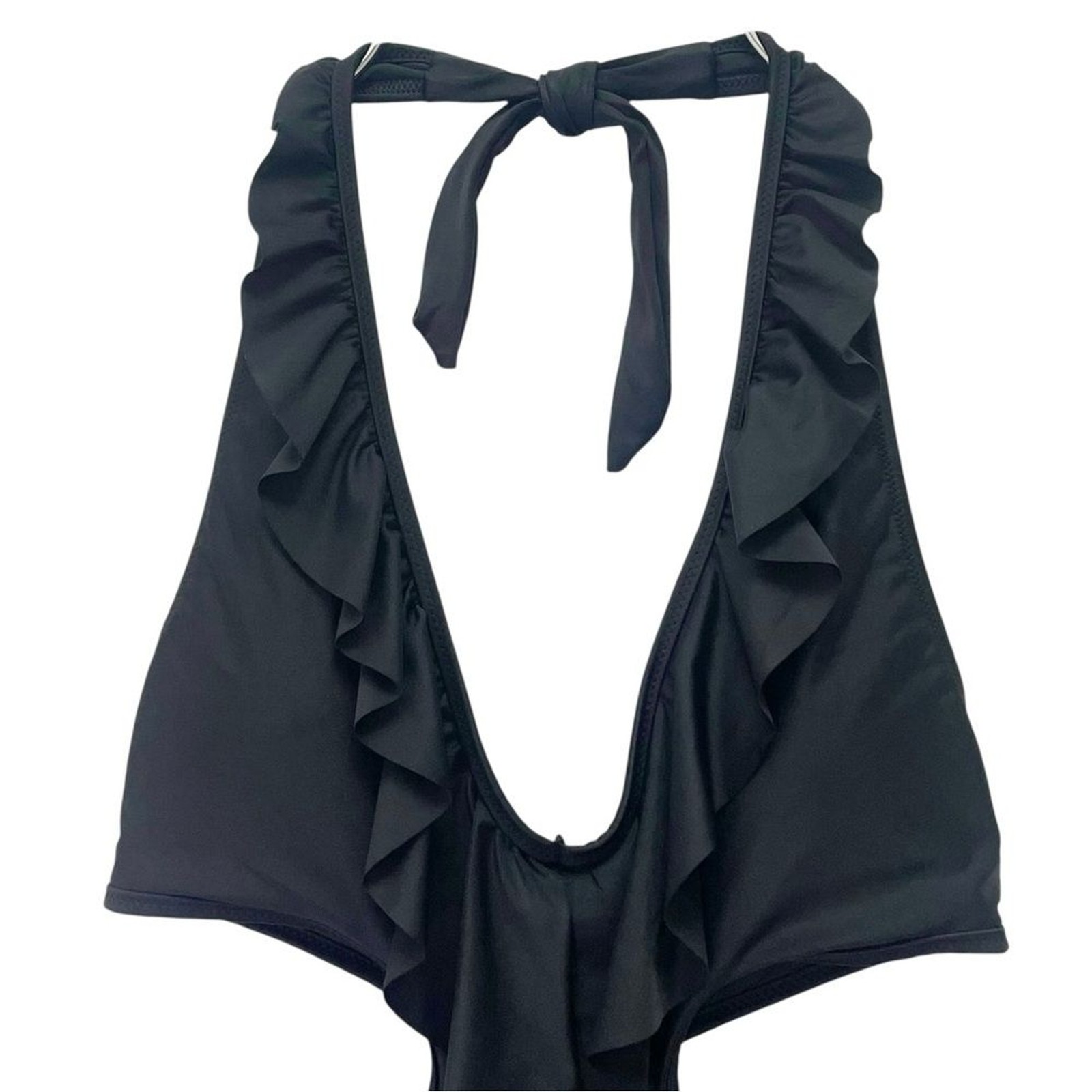 как выглядит NWT Aerie Ruffle Side Cut Out One Piece Swimsuit Black Size Small Halter NEW фото