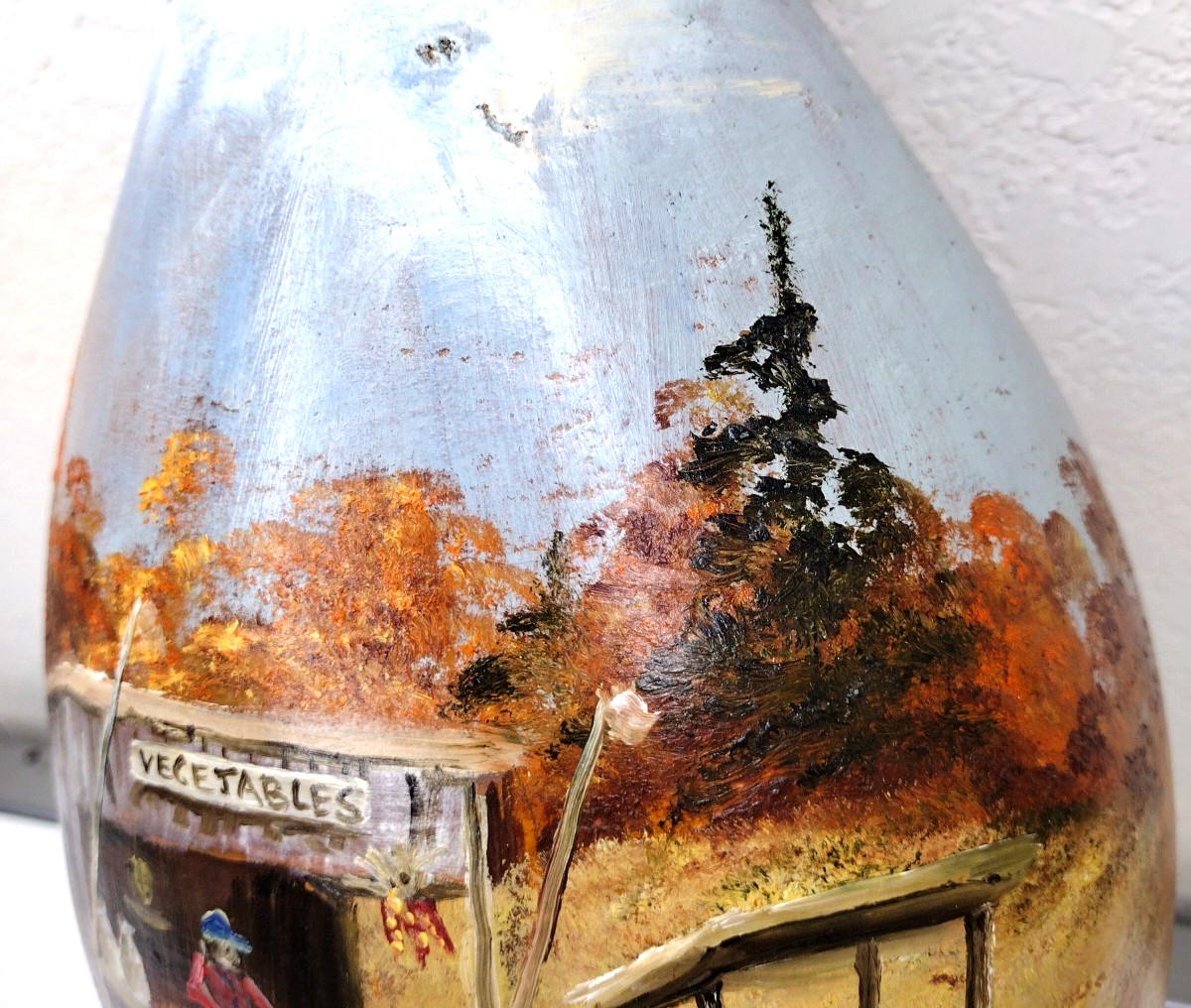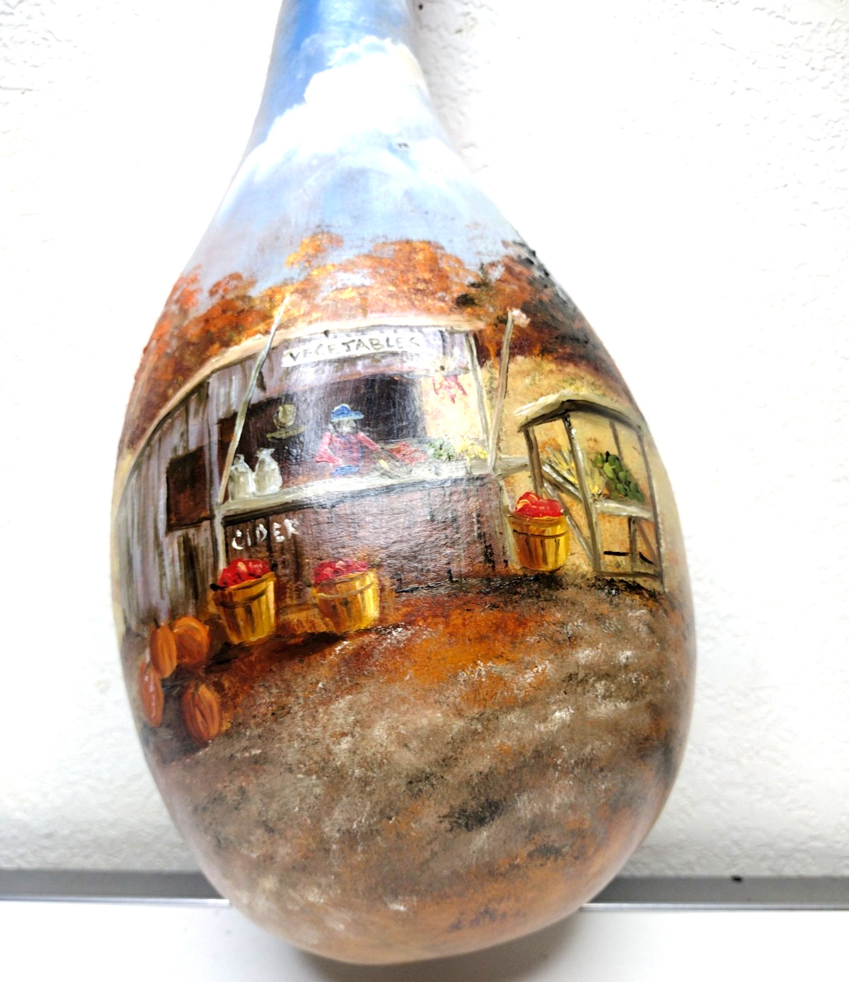как выглядит Vintage Hand Painted Gourd 15" Signed Rustic Folk Art Rural Country Farm Scene фото