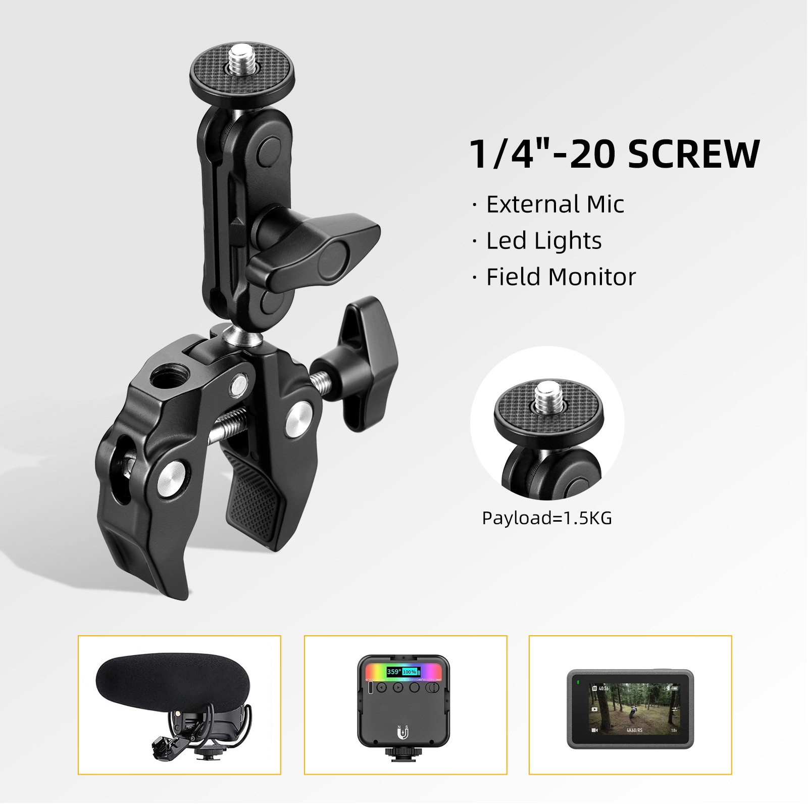как выглядит Super Clamp Camera Clamp Mount Monitor Aluminum Magic Arm Dual Ball Head Adapter фото