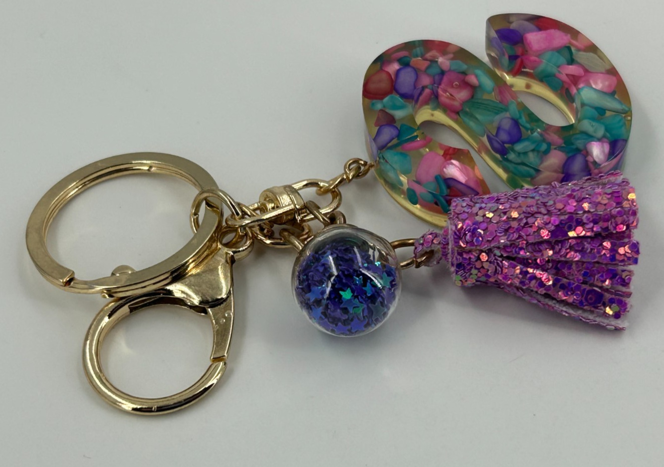 Letter S Initial Keychain Purple Pink Acrylic Sparkle Glitter Ball Keyring Fob
