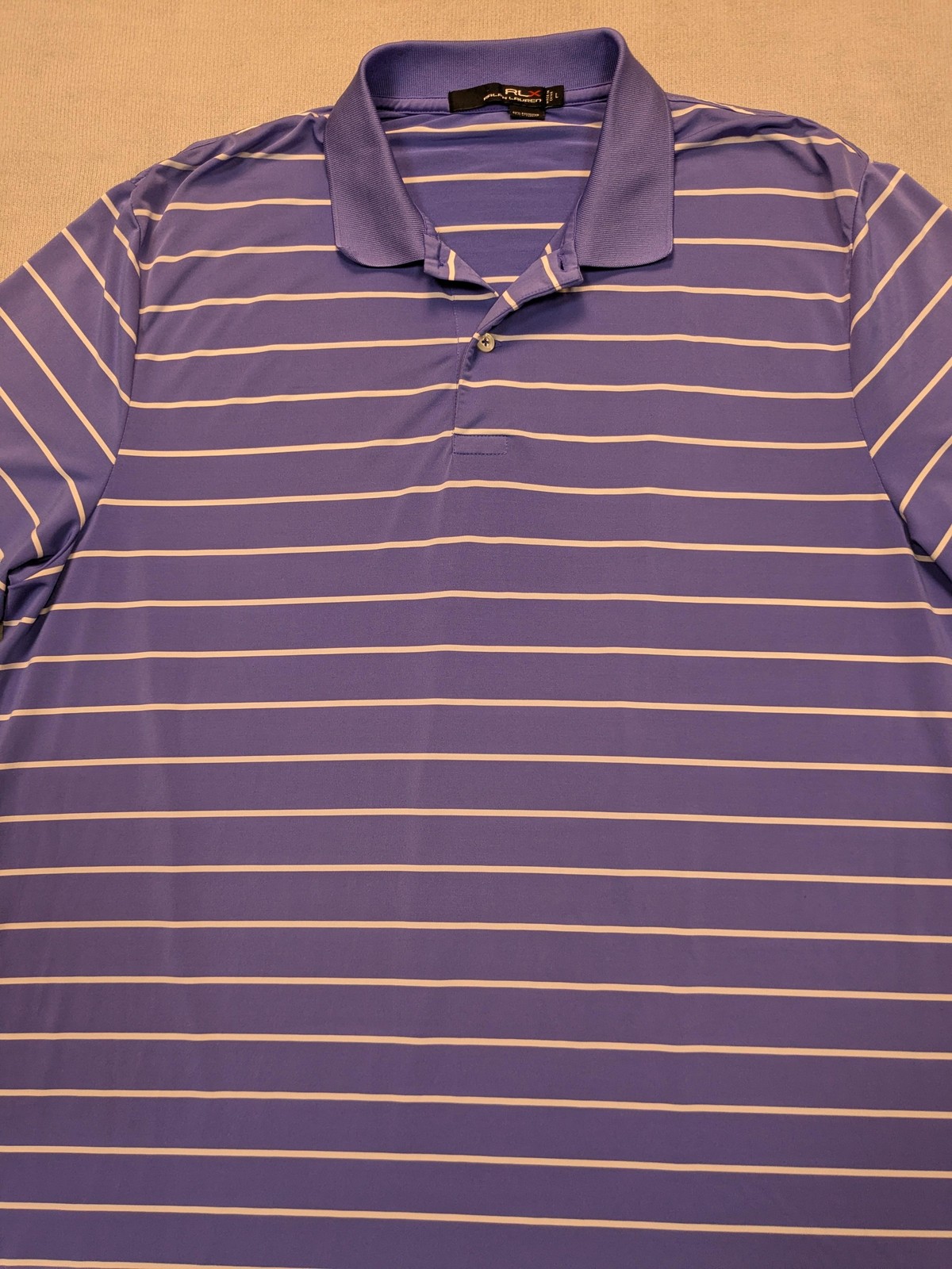 Ralph Lauren RLX Shirt Mens Large Purple Polo Golf Striped Performance Stretch