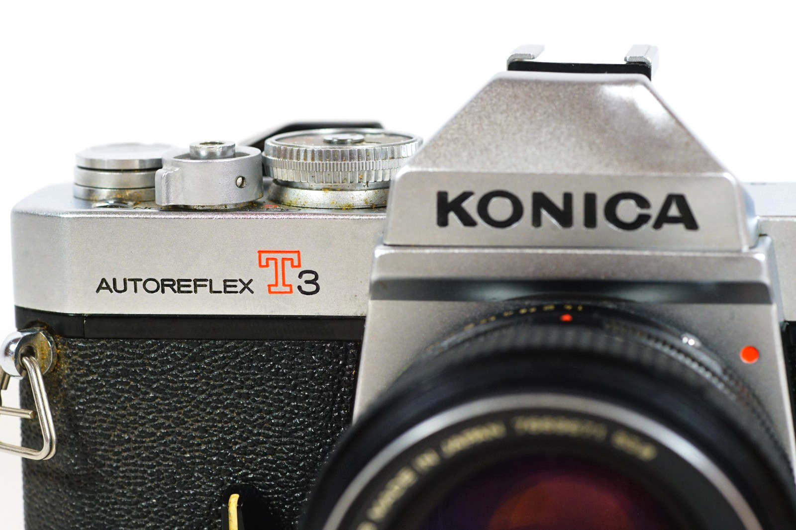 как выглядит Konica Autoreflex T3 SLR Camera Body With 50MM f/1.4 Hexanon Lens READ фото