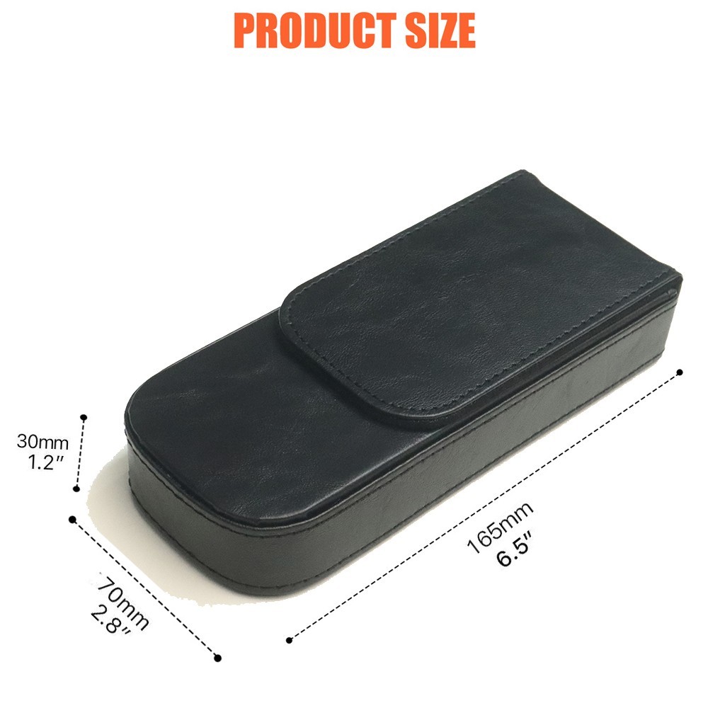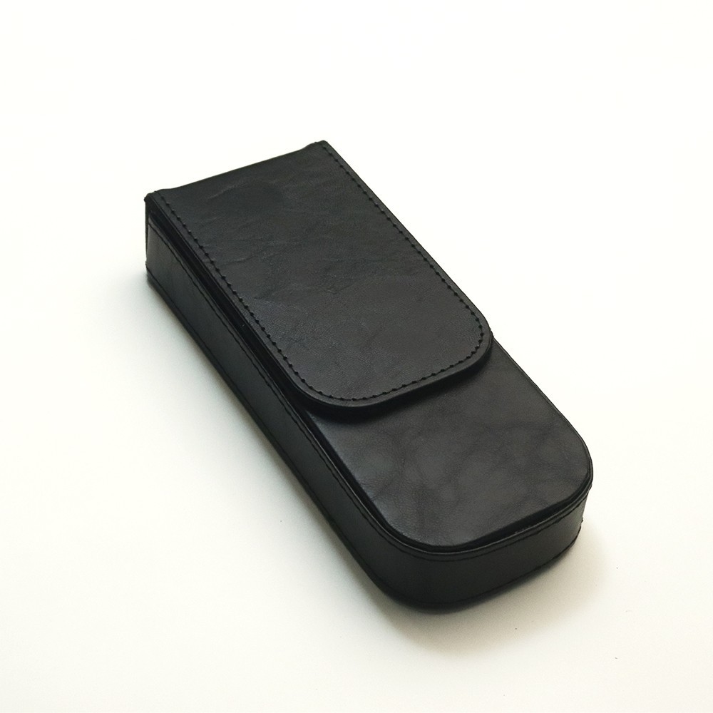 • Black Leather 3 Slots Hard Fountain Pen Case Storage Box Removable Pen Tray