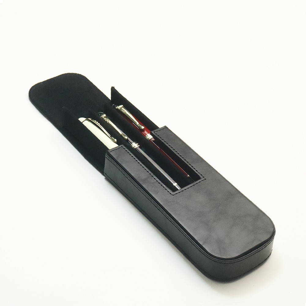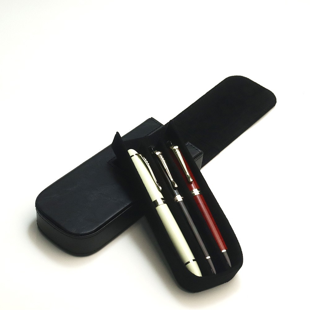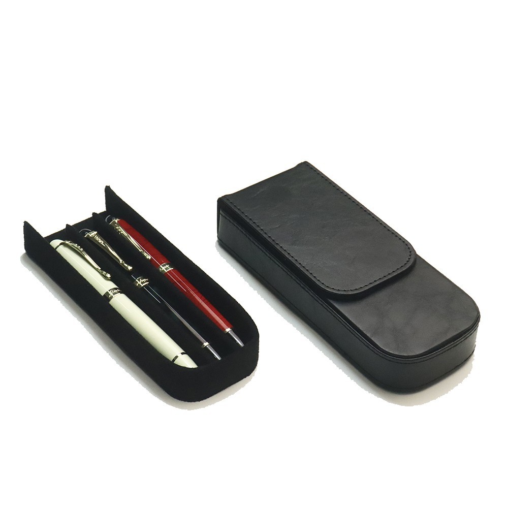 Black Leather 3 Slots Hard Fountain Pen Case Storage Box Removable Pen Tray