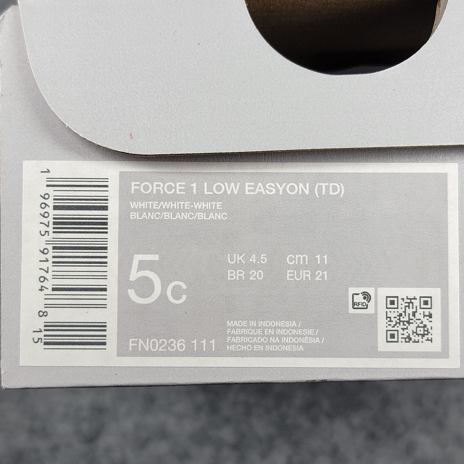 Nike Air Force 1 Low Easyon Shoes Toddler Sizes 3C-5C FN0236-111 White/White New