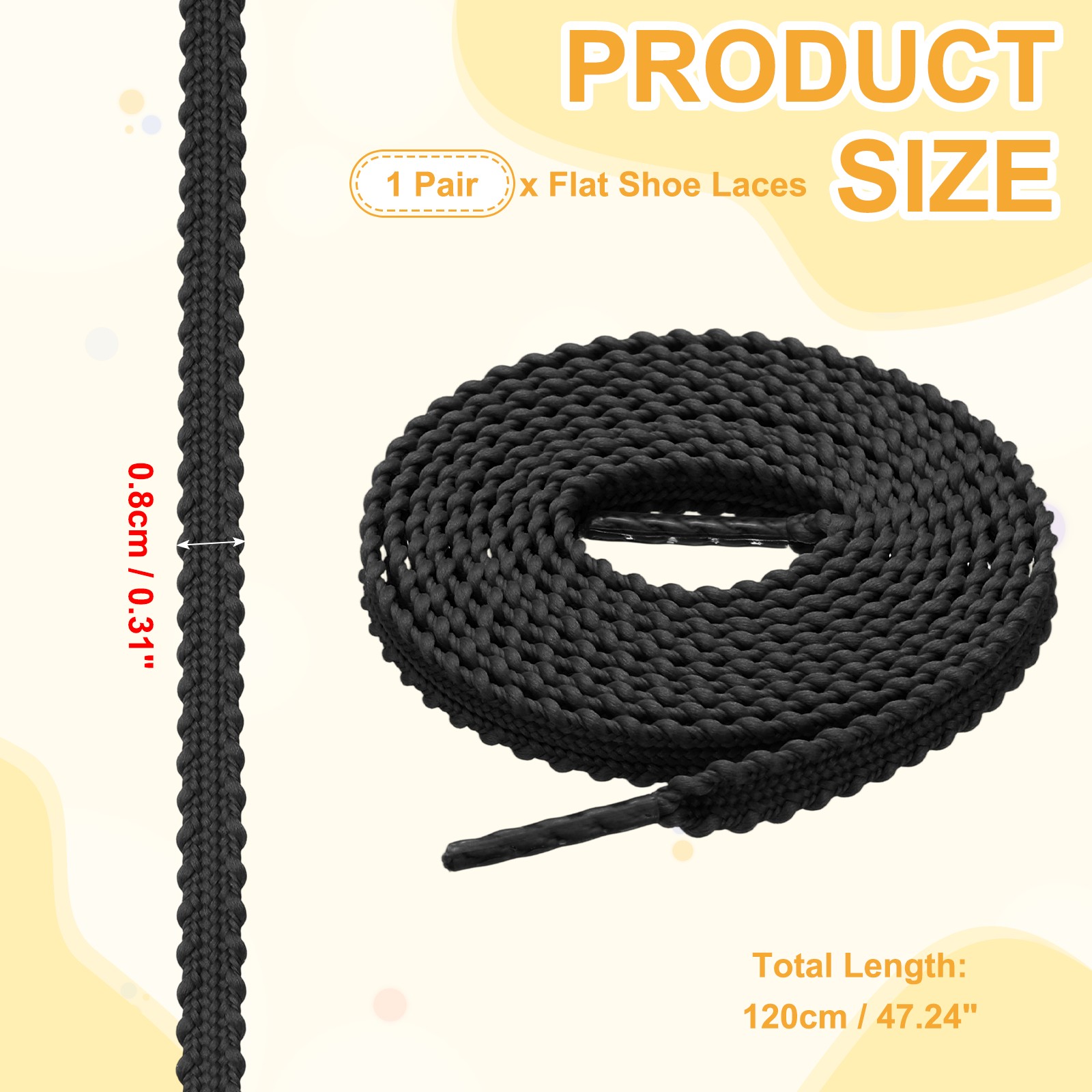 Flat Shoe Laces, 47 Inch Athletic Shoelaces for Sneakers Running, Black