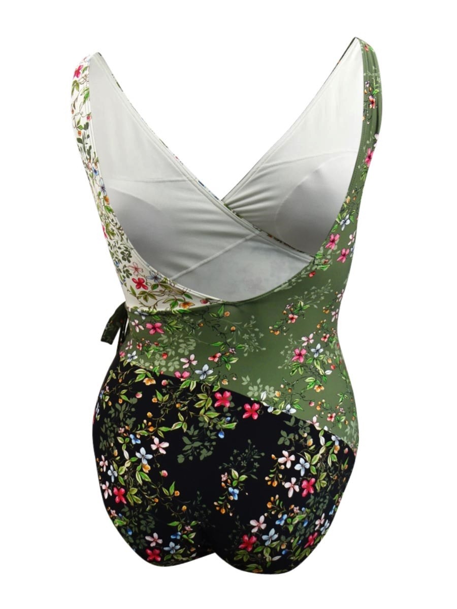 как выглядит Vince Camuto Womens Printed Wrap Tie One-Piece Swimsuit 14, Black Multi фото