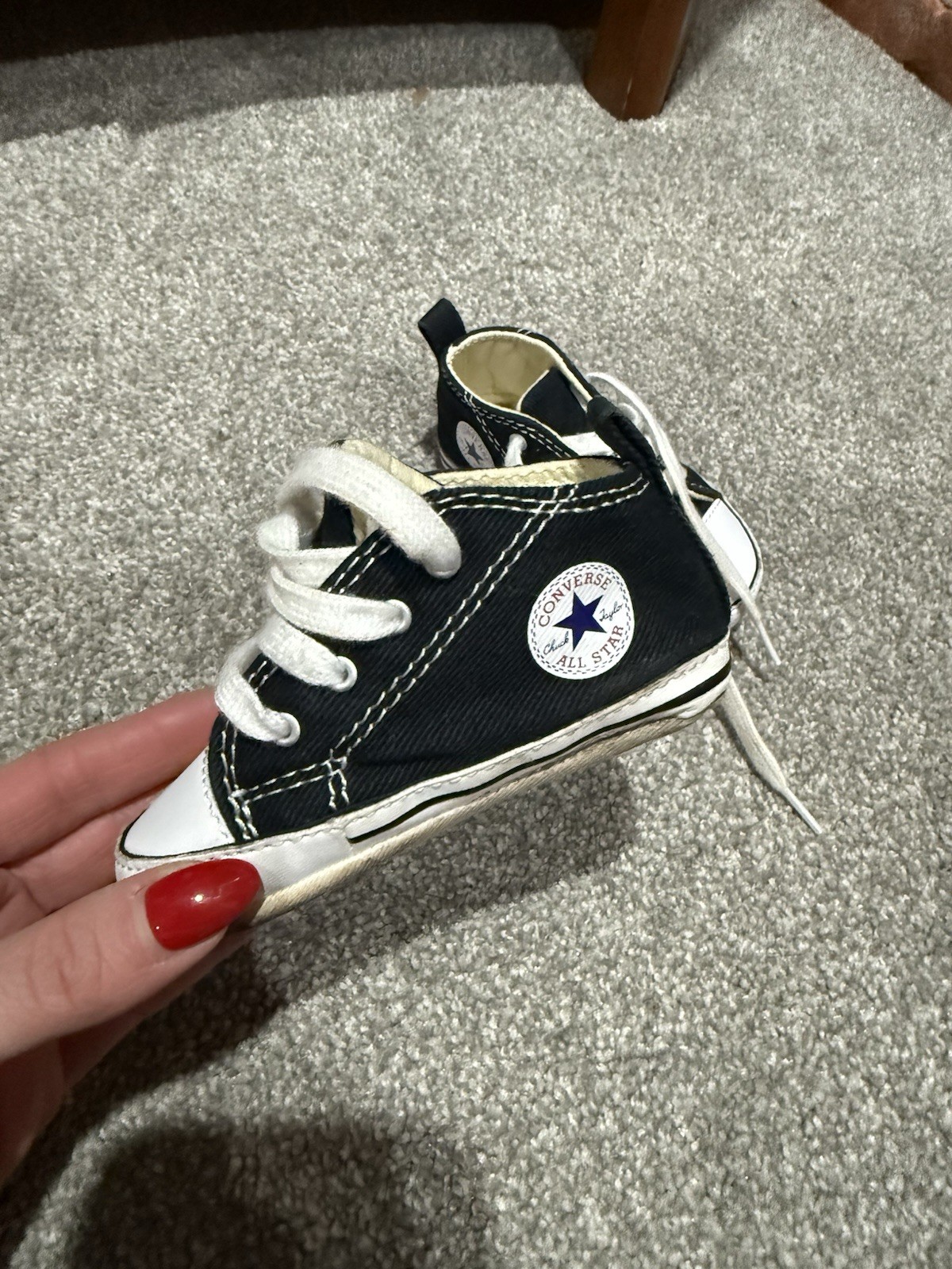 как выглядит CONVERSE NEWBORN CRIB BOOTIES BLACK 8J231 FIRST ALL STAR BABY SHOES SZ 3 фото