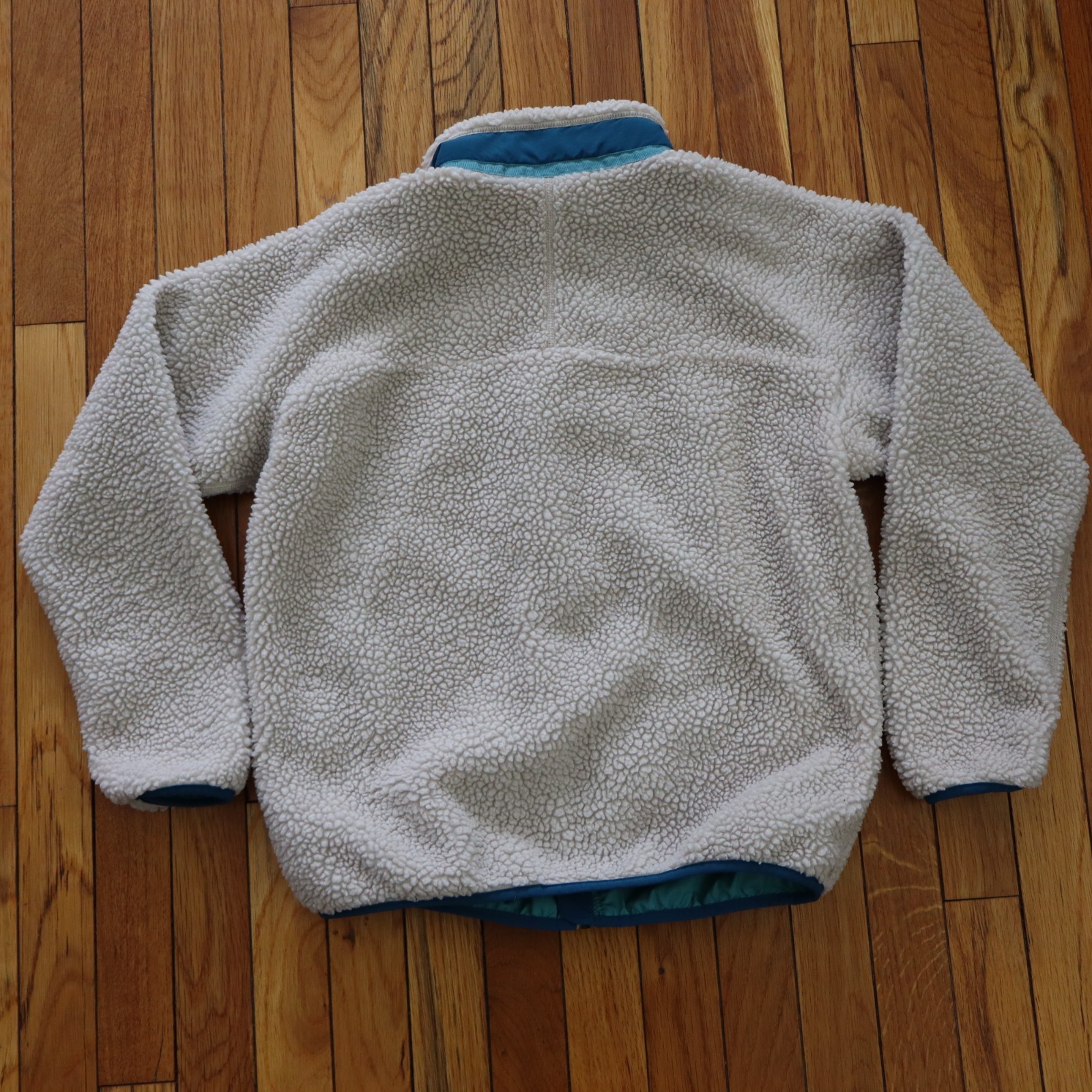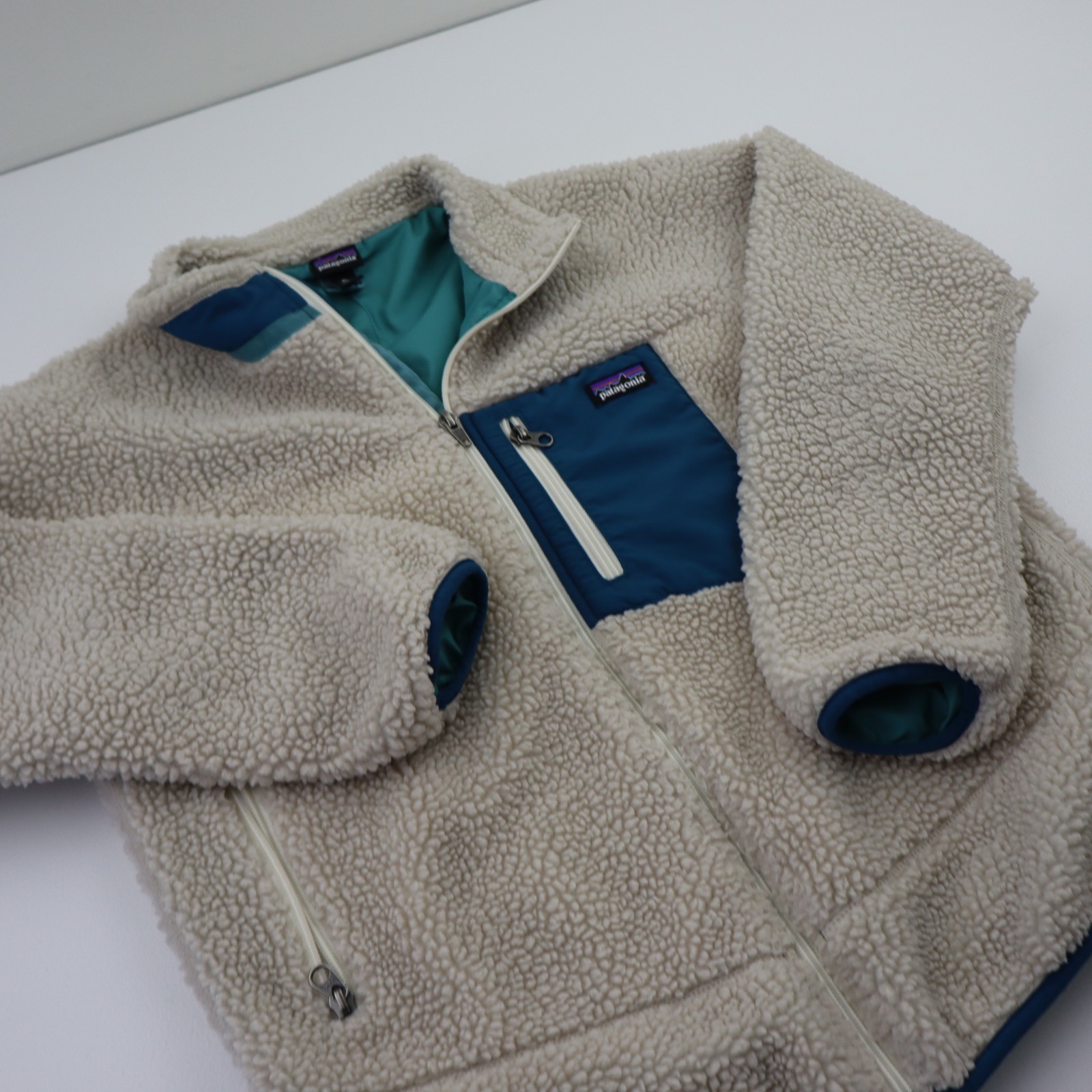 Patagonia Retro-X Deep Pile Fleece Jacket Kids XL 14 Beige Blue Boys Girls Coat