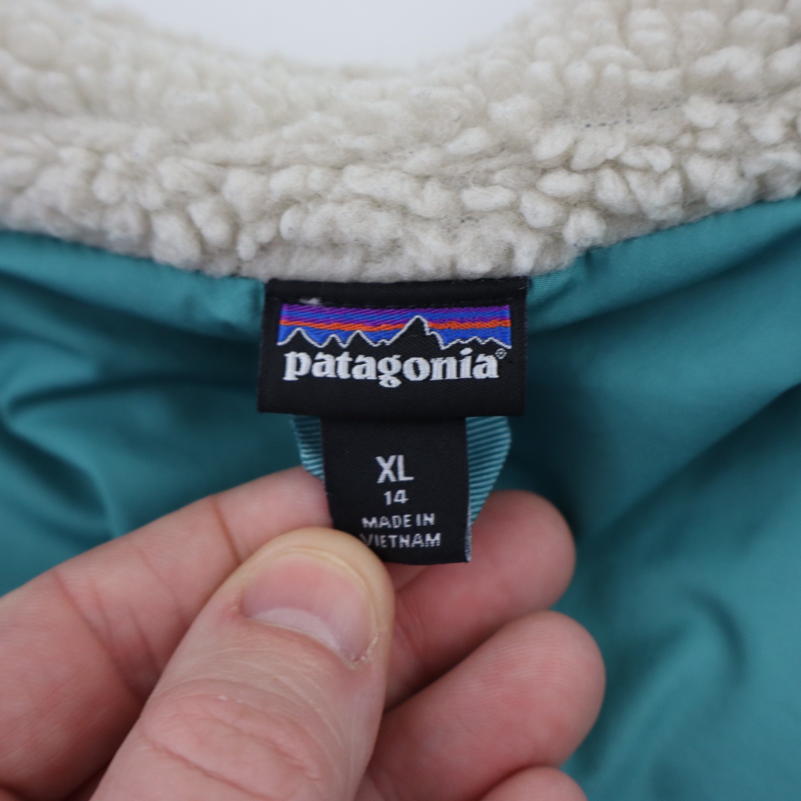 как выглядит Patagonia Retro-X Deep Pile Fleece Jacket Kids XL 14 Beige Blue Boys Girls Coat фото