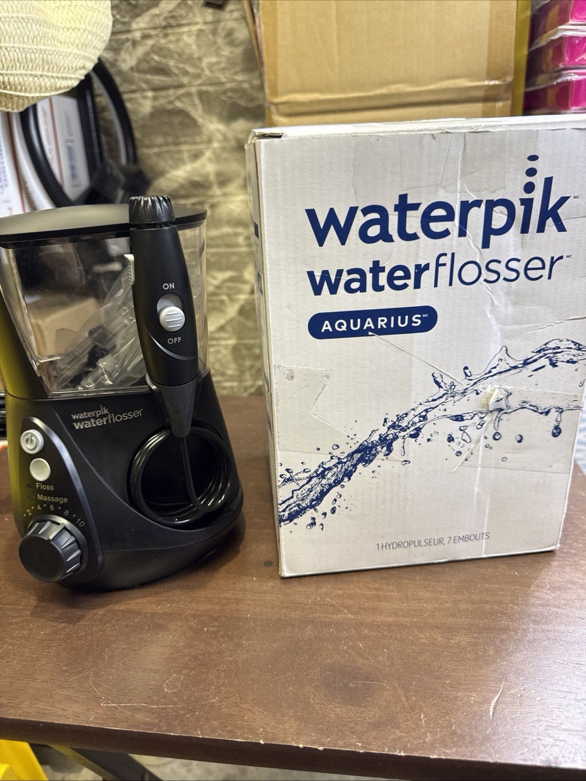 как выглядит Waterpik Aquarius Water Flosser with 10 Settings, 7 Tips, WP-662 Black USED фото