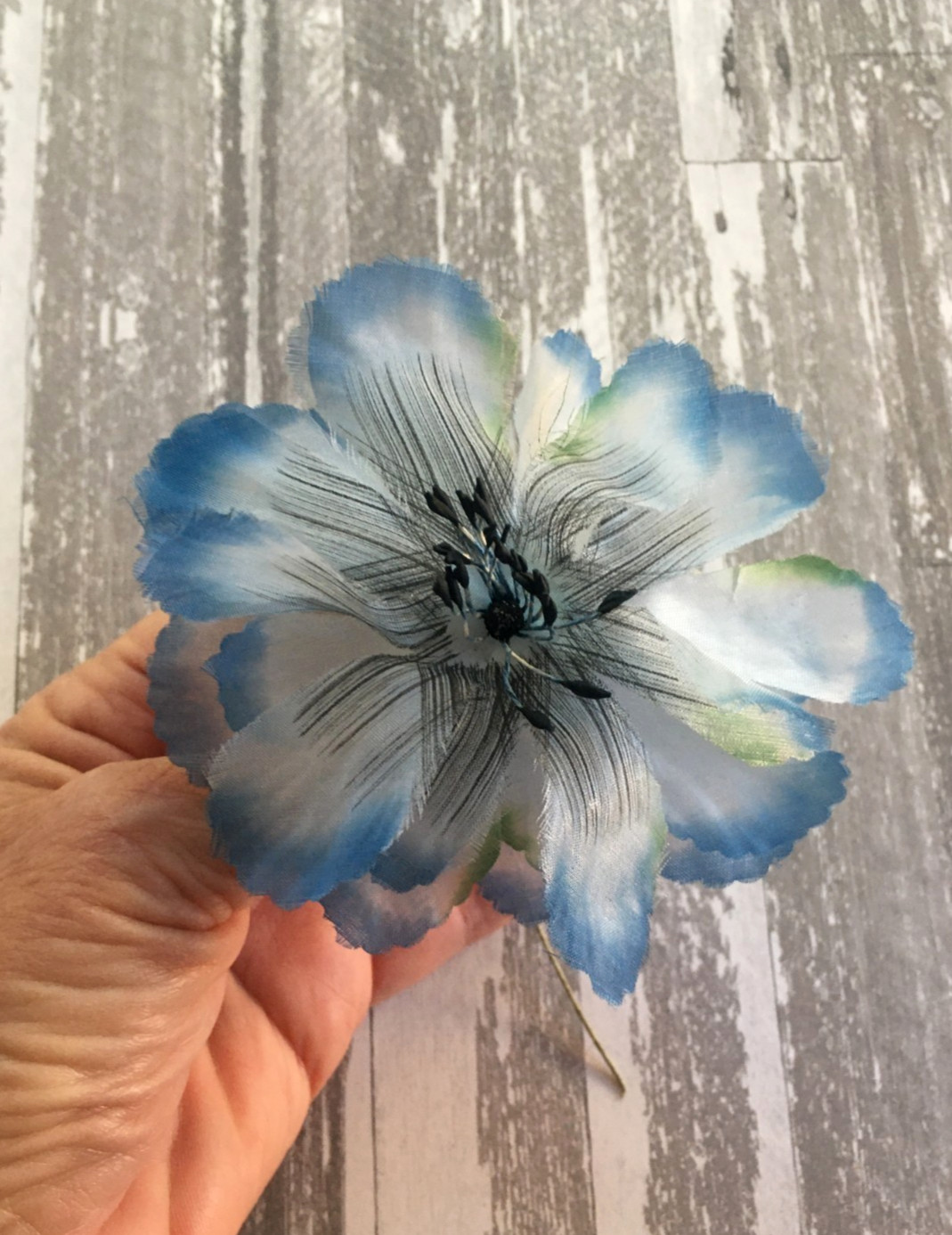 как выглядит Antique Vintage Millinery Silk Flower Blue Color фото