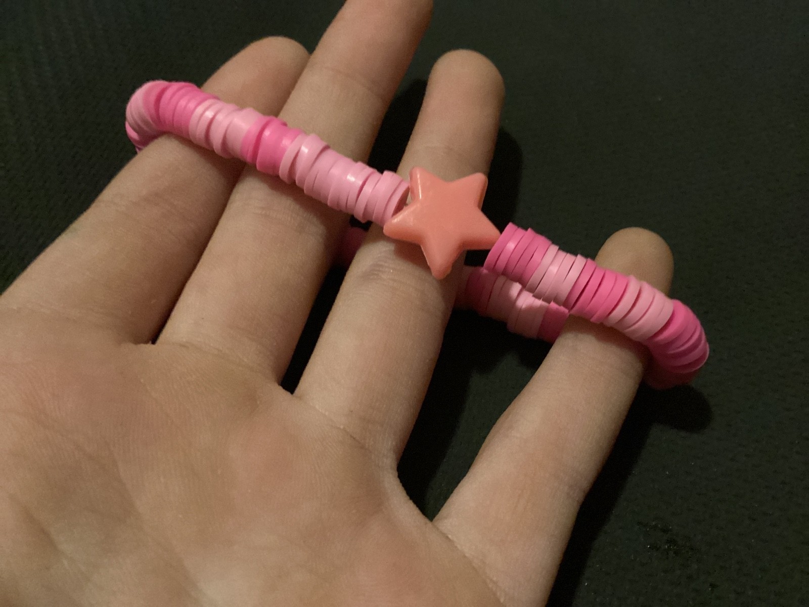 как выглядит handmade clay bead pink star bracelet for kids фото