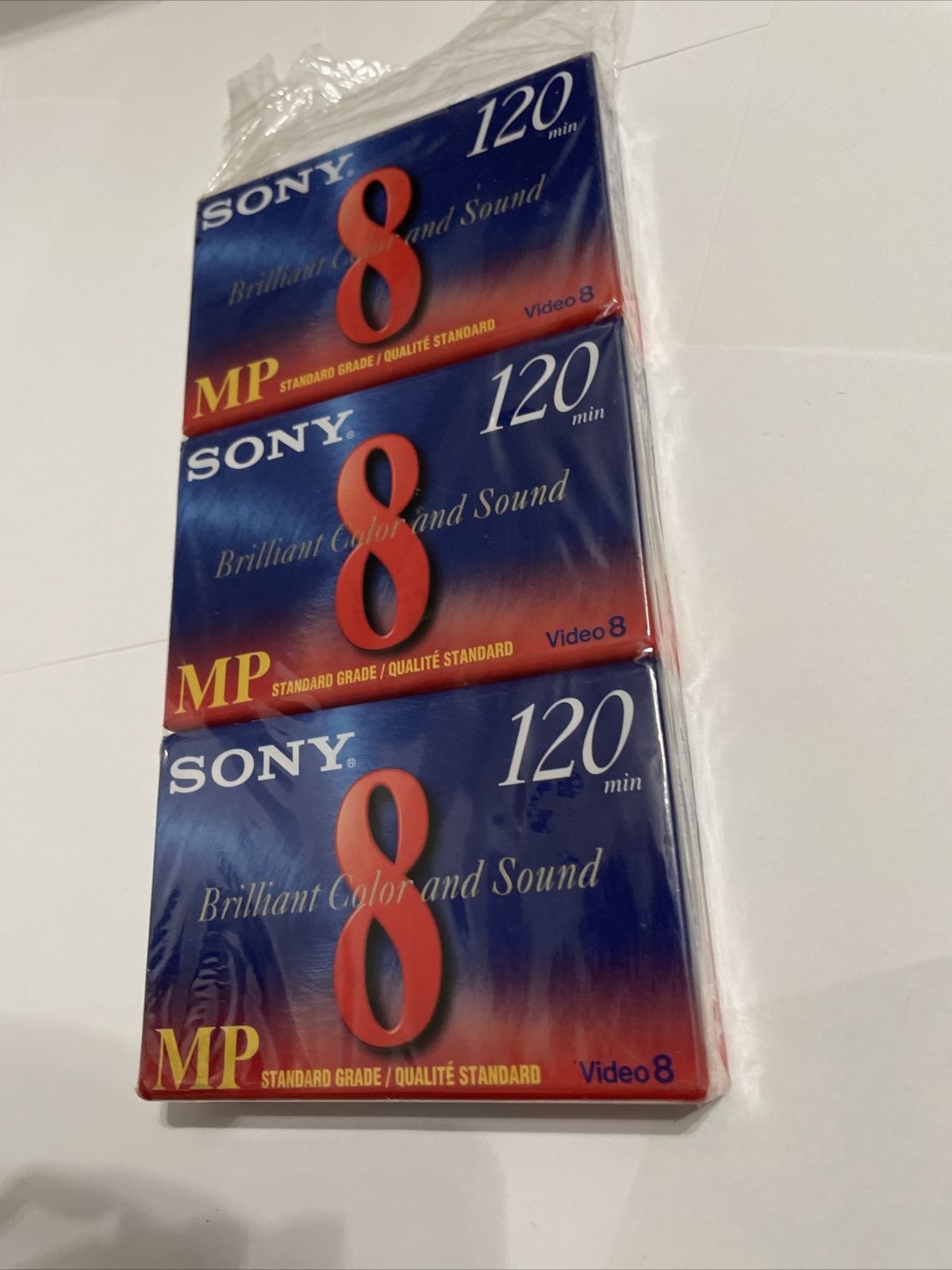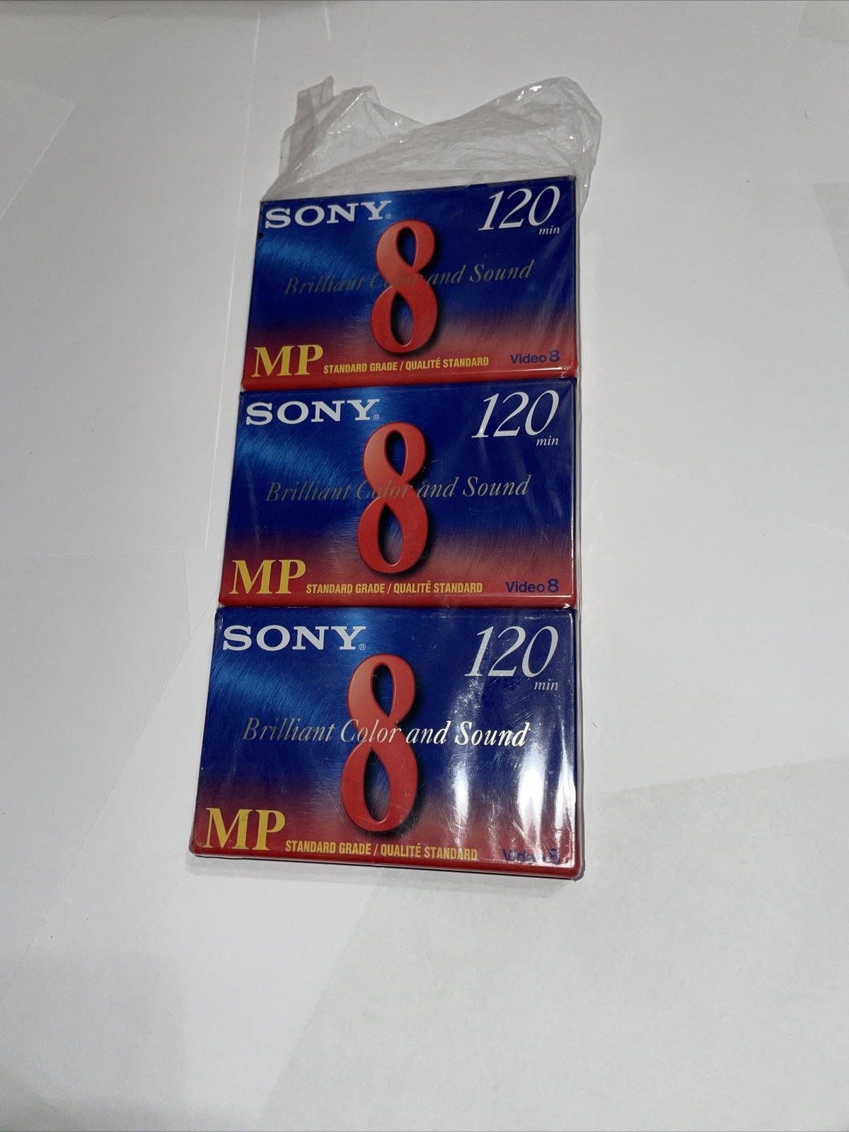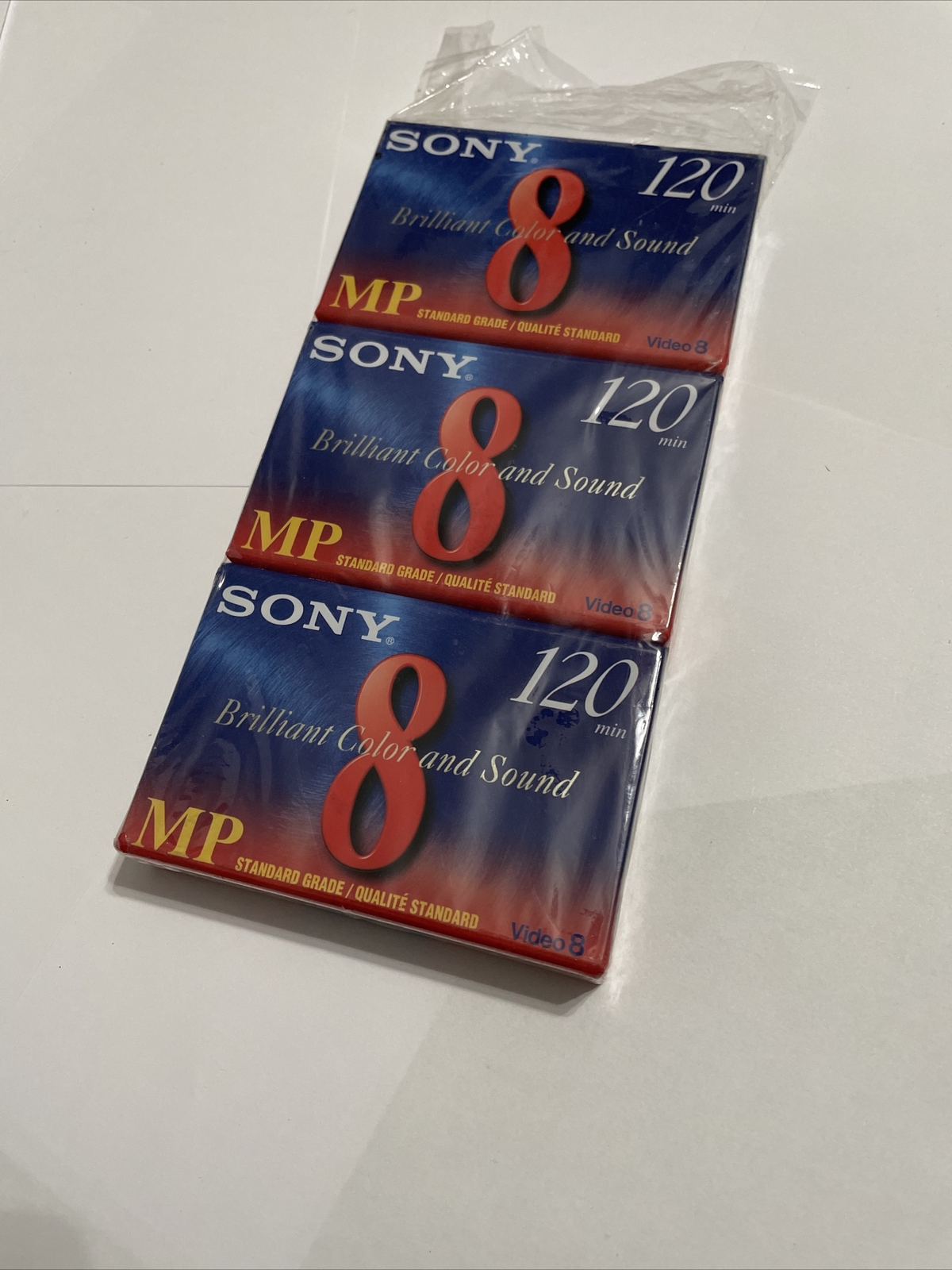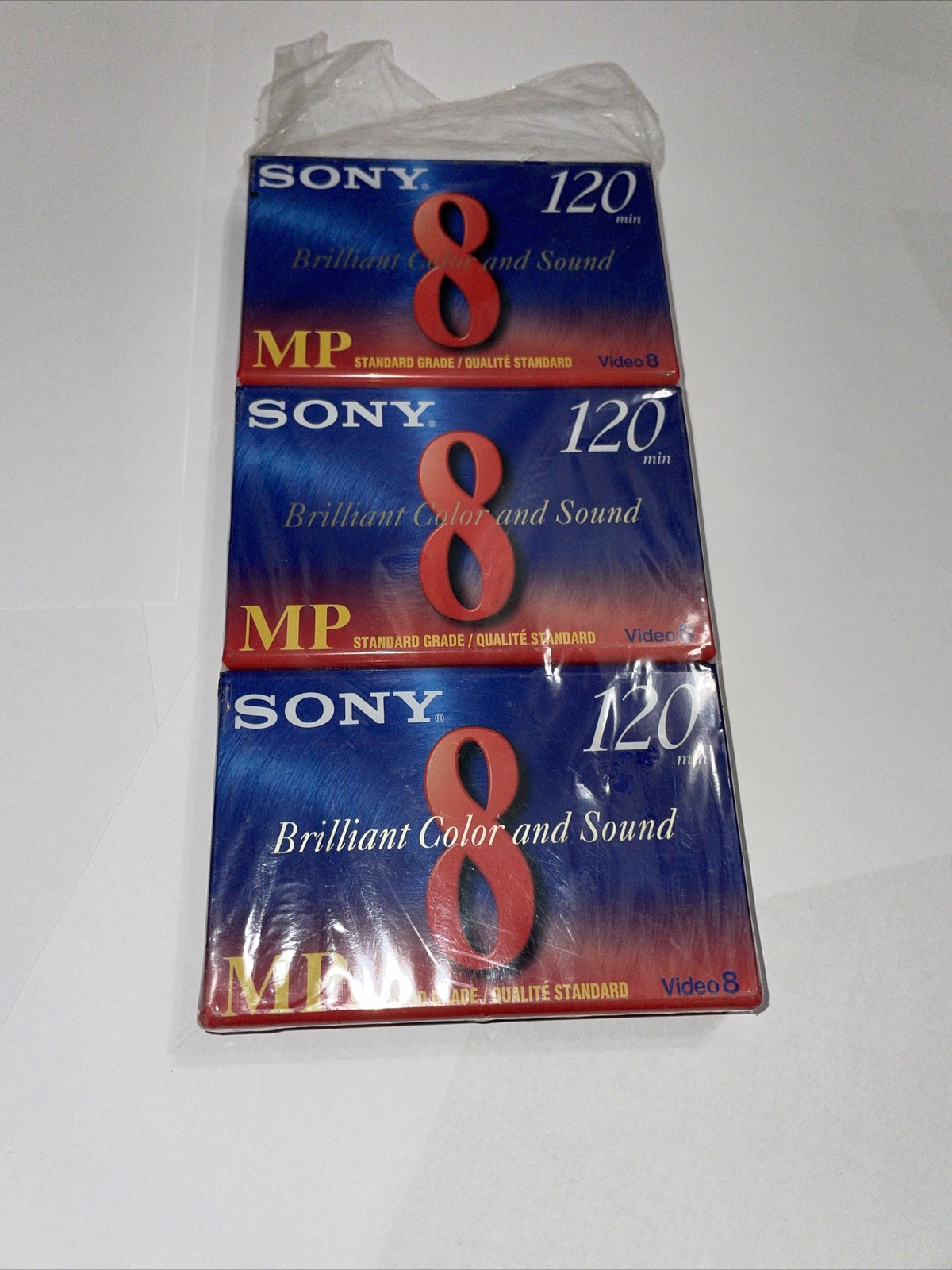 как выглядит New Sealed Sony P6-120MP 3 Pack 8mm MP Blank Video Cassettes 120 min фото