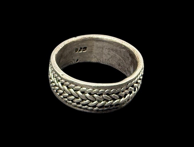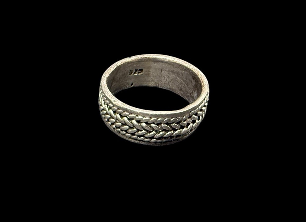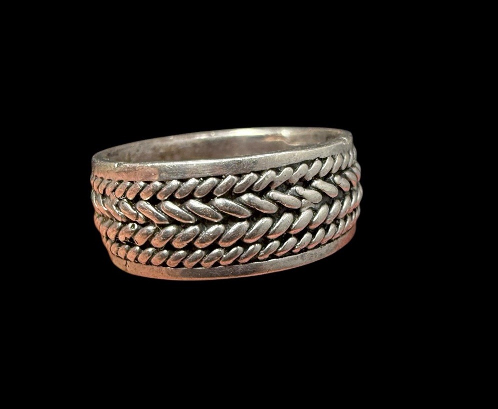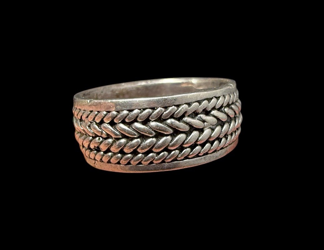 как выглядит Vintage Sterling Silver Wide Band Ring Braided Texture Size 8 фото