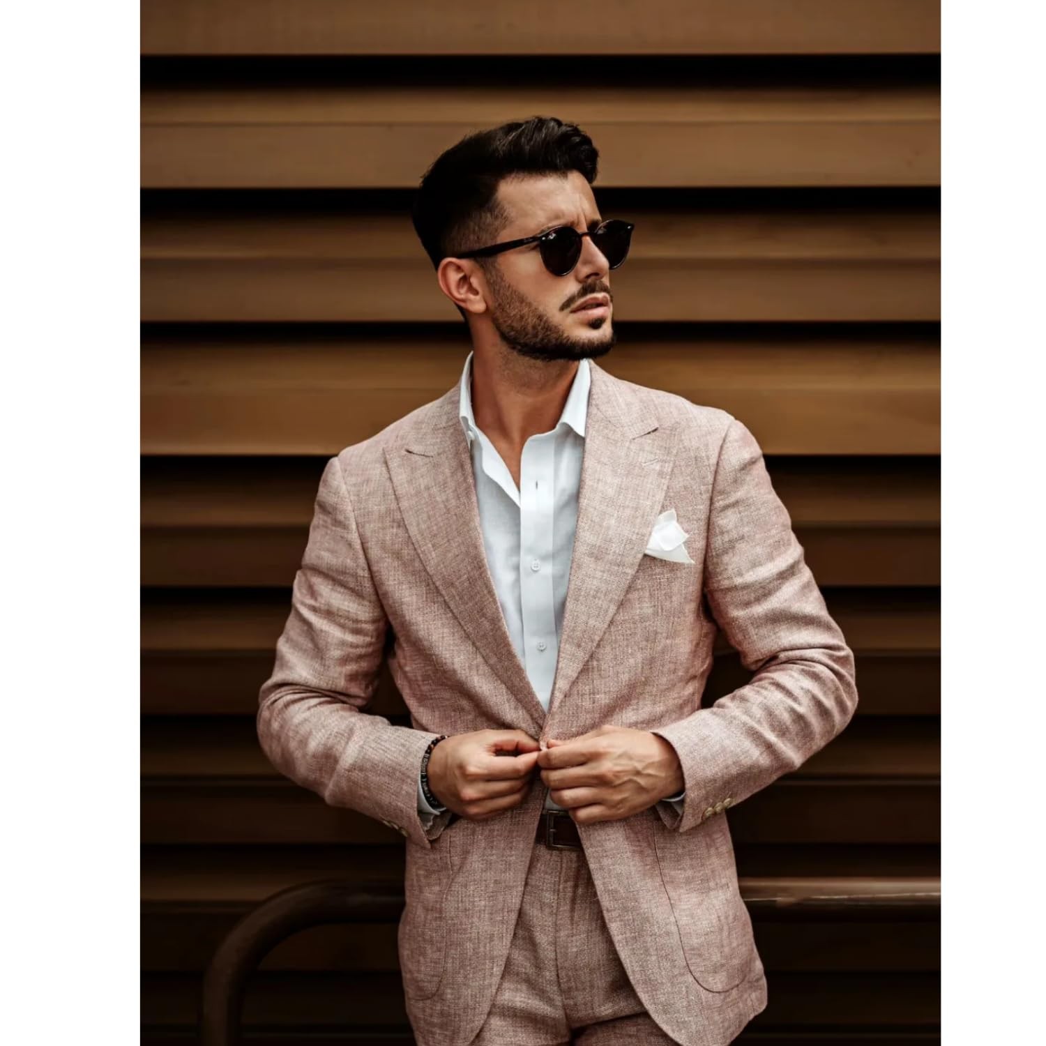 UNINUKOO Linen Suit for Men Summer Wedding 2 Piece Suit Set Peak Lapel Casual